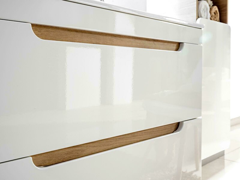 The 'Design Bathroom Furniture Bath Set Cabinet Washbasin Lighting' seamlessly combines modern aesthetics with functional utility, making it a standout addition to any contemporary bathroom. Featuring a sleek washbasin with dimensions of approximately 80 cm in length, 53 cm in height, and 46 cm in depth, it offers ample space for daily use. The matching cabinet, measuring approximately 35 cm in length, 170 cm in height, and 35 cm in depth, provides generous storage for all your bathroom essentials, ensuring a clutter-free environment. The included mirror, sized at 60 cm by 80 cm, enhances the sense of space and light in the room. Each piece is crafted from premium wood, combining durability with sophisticated style. Optional accessories, such as a freestanding faucet, a matching siphon, and comfortable headrests, allow you to customize the set to fit your personal preferences.