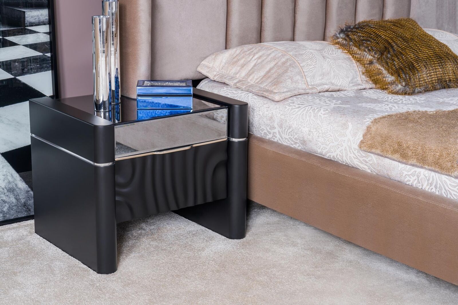 Luxury Bedroom Set Bed + 2x Nightstands Wood Complete Modern New