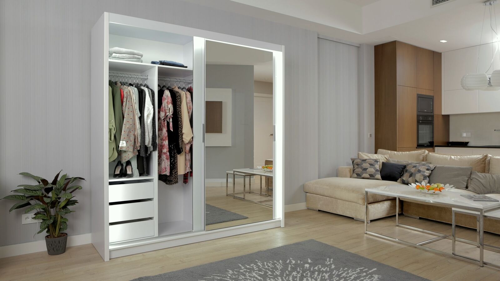This tall cabinet is designed to meet all your storage needs, providing a generous space to keep your clothing organized and accessible. It is perfect for bedrooms where floor space is limited but storage space is necessary. The interior can be customized with shelves and hanging space to accommodate everything from summer dresses to heavy winter coats. Additionally, its sleek and clean lines make it a stunning focal point in any room. Ideal for those who need more than just a storage solution, this wardrobe could serve as an eye-catching display in a guest room, dressing area, or even a modern walk-in closet setup. With its blend of elegance and practicality, it truly is a brilliant addition to any home.