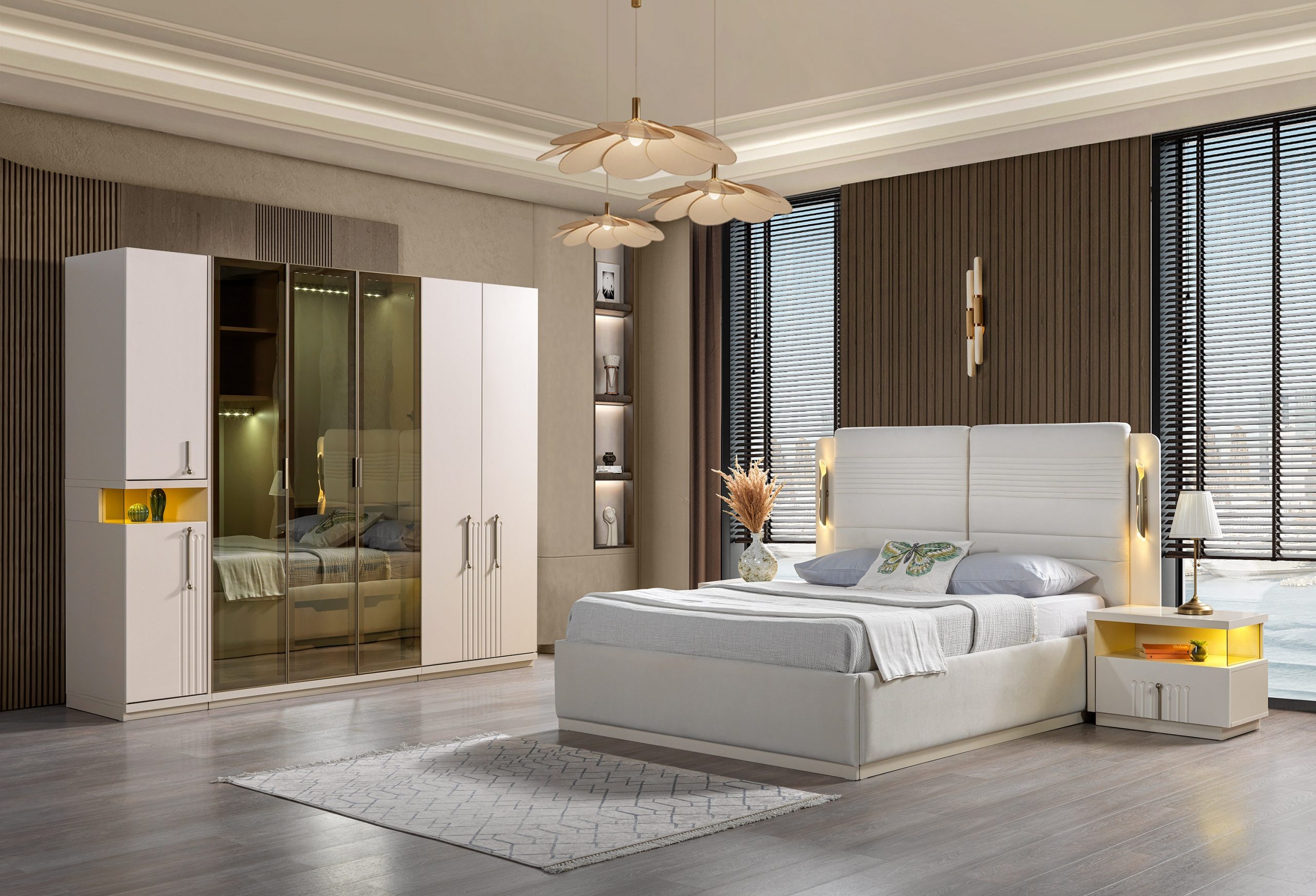 Indulge in the sophistication of the Koko Bed Set, a meticulously curated ensemble comprising a bed, wardrobe, and nightstand. Each piece, enveloped in a sumptuous beige hue, exudes an air of understated elegance, seamlessly enhancing any luxurious interior. Crafted from the finest materials with an unwavering commitment to quality, this four-piece set embodies the essence of refined living. The Koko Bed offers a sanctuary of comfort, while the wardrobe and nightstand provide functional beauty, harmonizing form and function. With two decades of expertise in luxury furniture, this collection is a testament to timeless design, making it the quintessential choice for those who appreciate exclusivity and style in their home. Elevate your space and embrace the lifestyle you deserve.