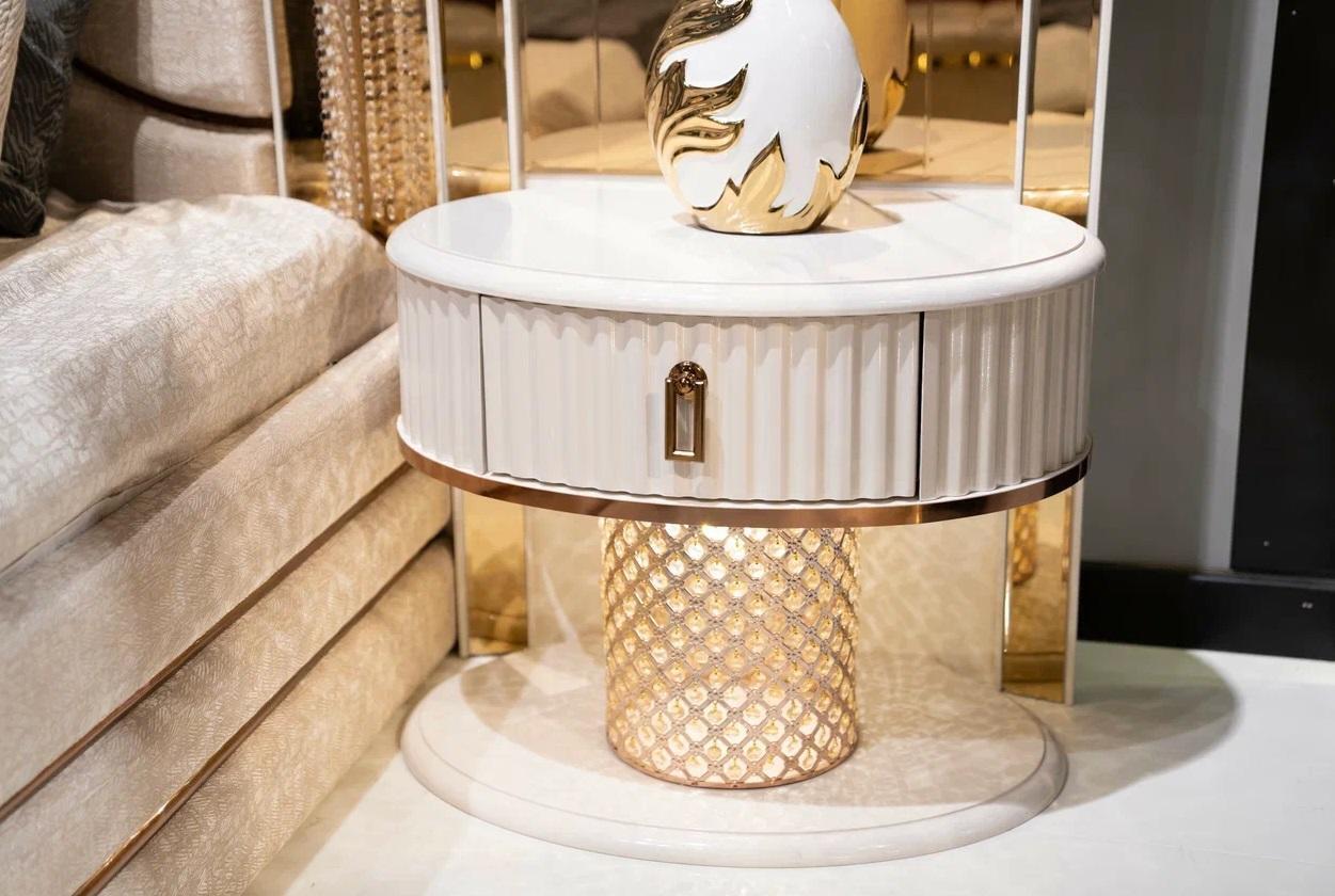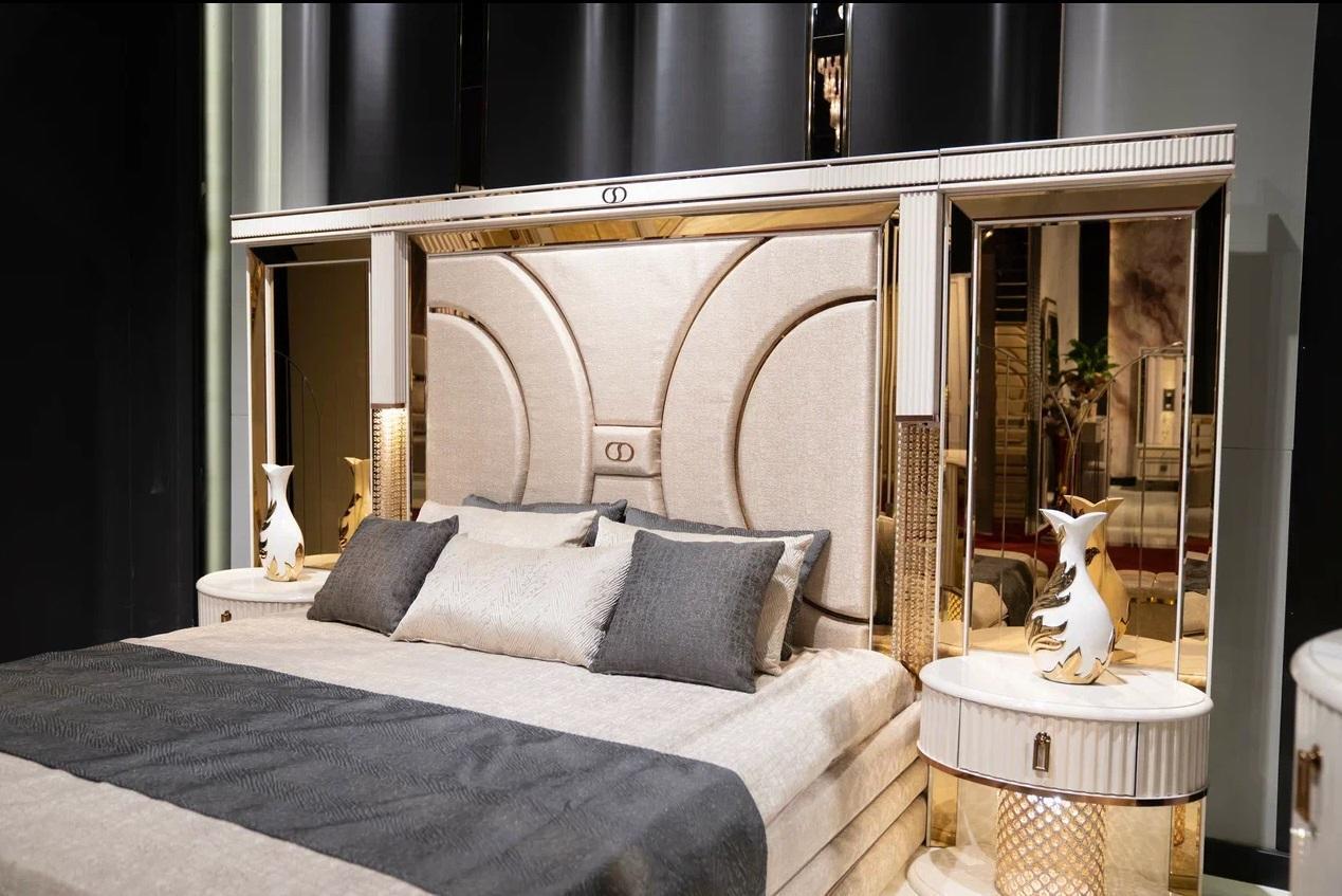 Bedroom set bed 2x nightstands stool luxury new 5-piece design wood
