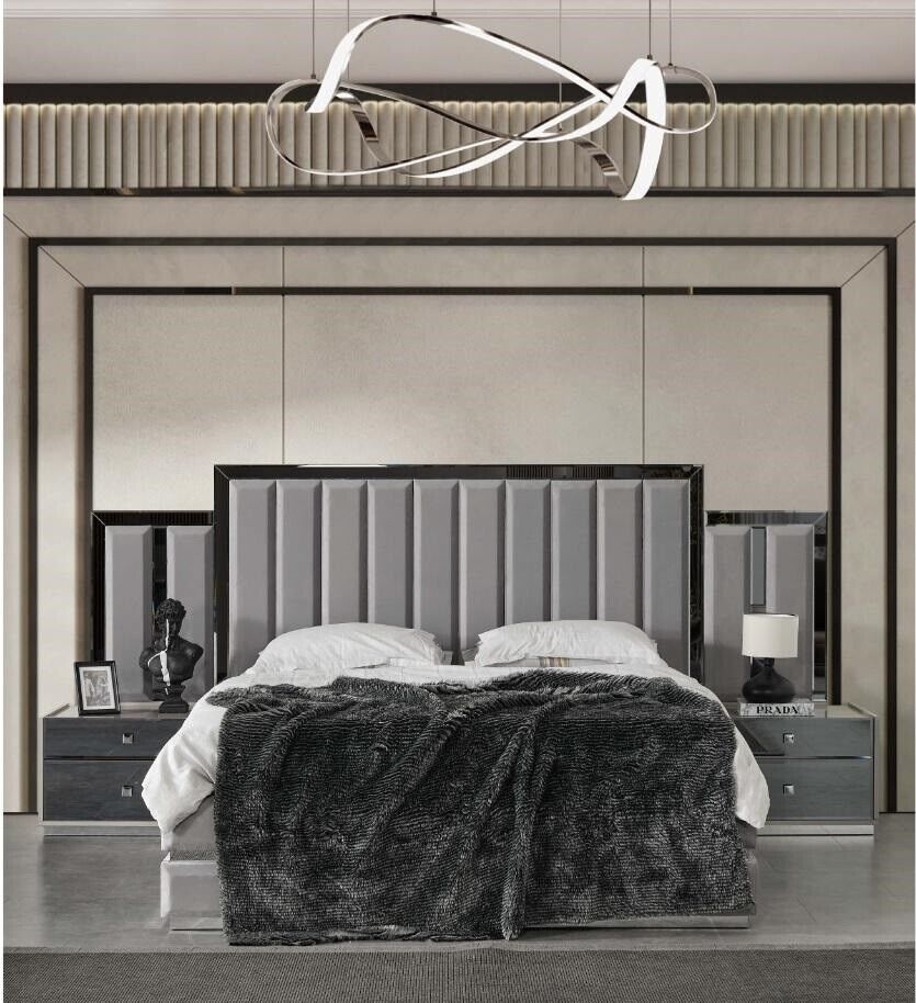 Complete bedroom double bed bed nightstands 4-piece gray wardrobe