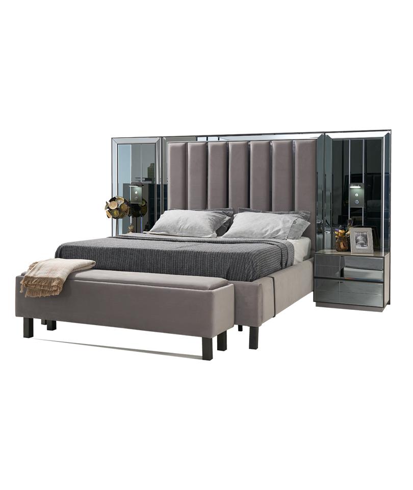 Bedroom set: bed, 2x nightstands, stool, double beds, upholstered furniture, 4-piece set, new.