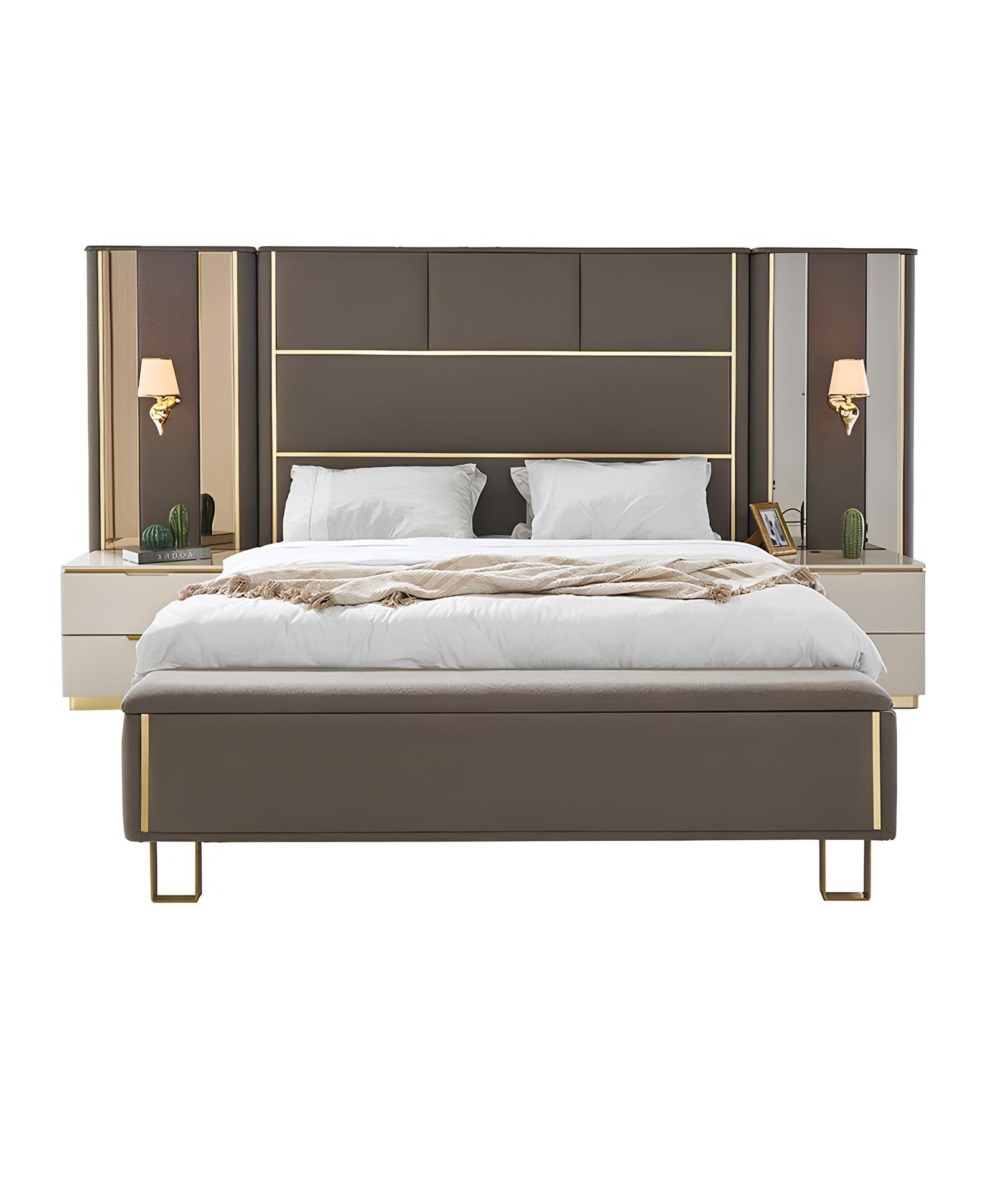 Luxury bedroom complete bed nightstand dresser mirror wardrobe 7-piece furniture