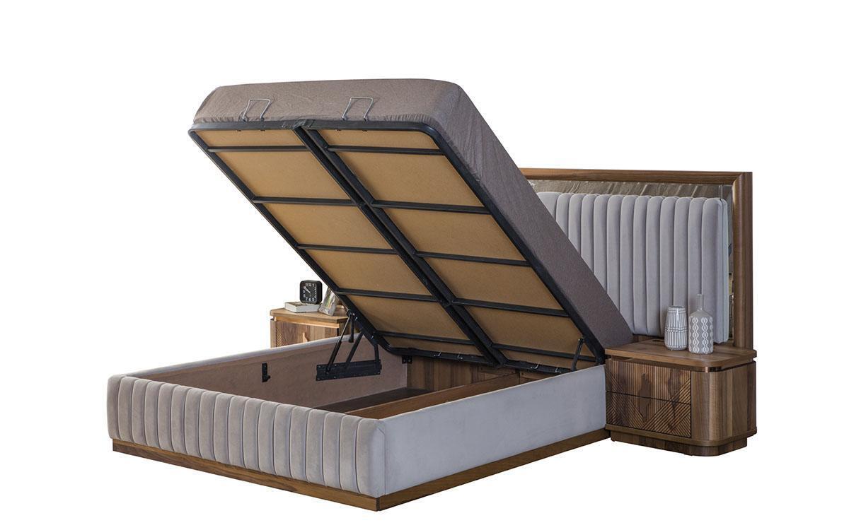 Luxury bedroom set bed + 2x nightstands wood complete modern