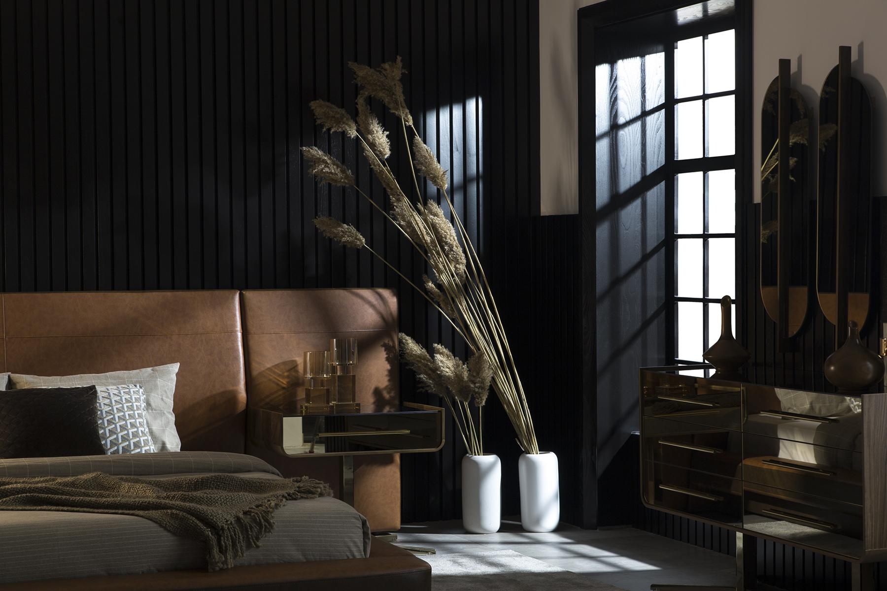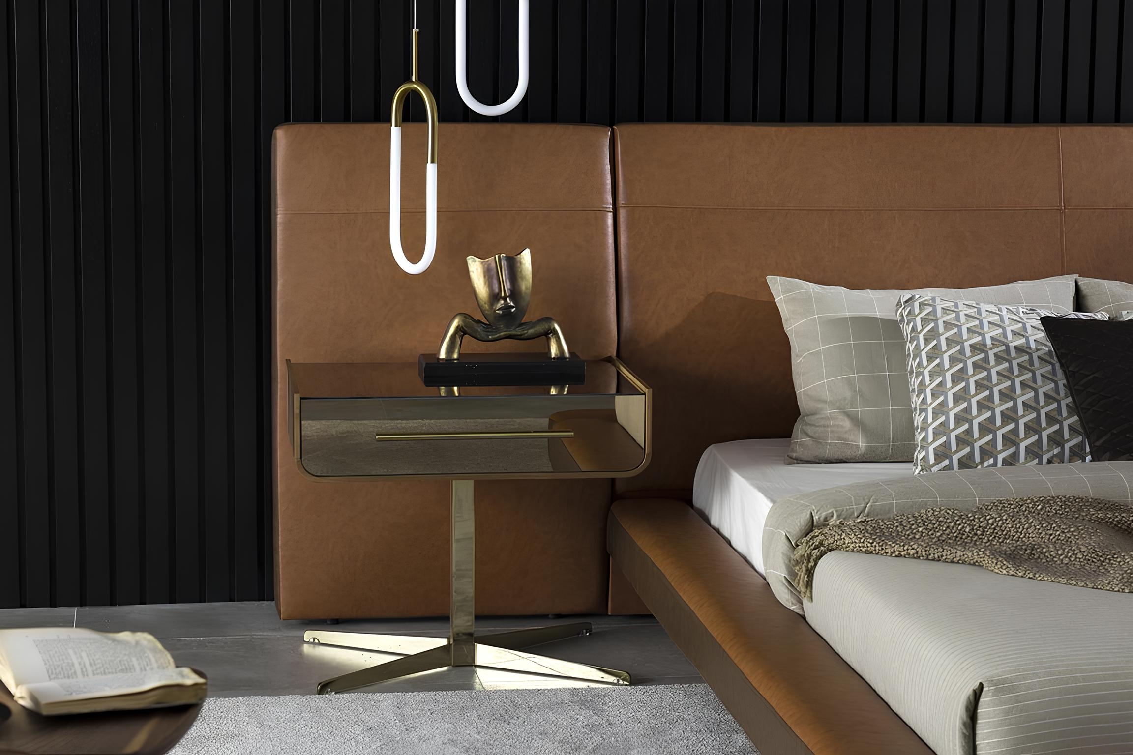 Indulge in the epitome of refined living with this exquisite bed, meticulously crafted from sumptuous brown polyester, offering both comfort and sophistication. Its elegant design seamlessly integrates with two stunning glass nightstands, creating a harmonious interplay of textures and materials that elevate your bedroom to a sanctuary of luxury. With an emphasis on quality and aesthetics, this piece reflects a commitment to an exclusive lifestyle, perfect for discerning homeowners. Its timeless appeal and unparalleled craftsmanship are a testament to two decades of expertise in luxury furniture, ensuring that each element is designed to create a serene and opulent ambiance, making it an essential addition to your curated collection.