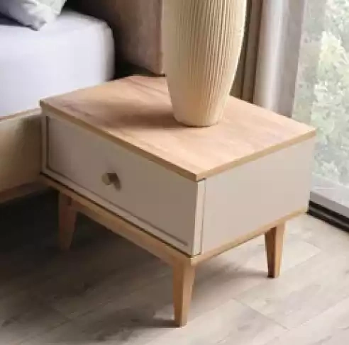 Luxury bed for the bedroom + 2 modern wooden nightstands in beige