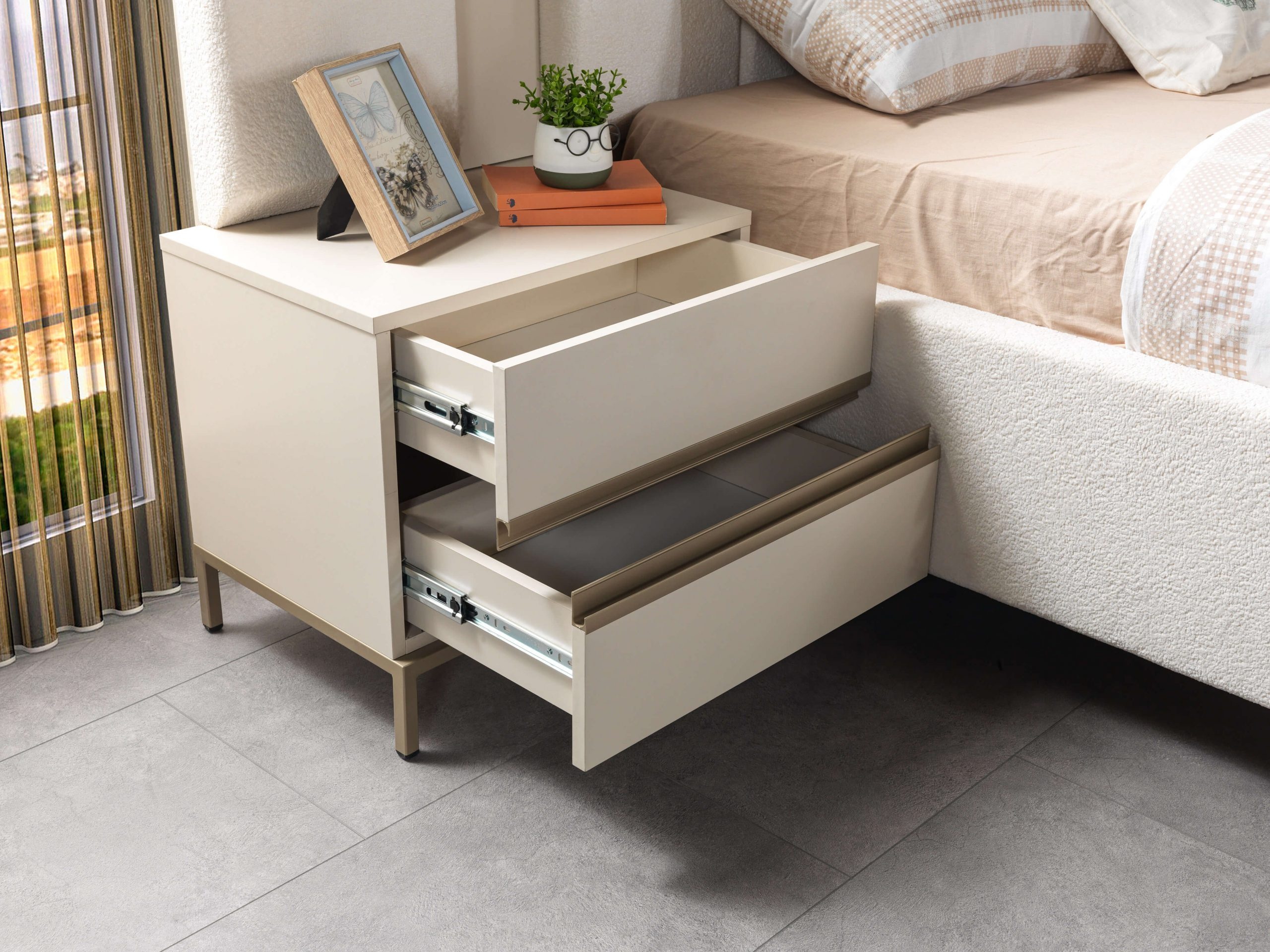 Introducing the Elegant Nightstand, a masterful fusion of practicality and sophisticated design, destined to elevate your bedroom's ambiance. Measuring approximately 58 x 42 x 52 cm, its refined beige finish seamlessly complements a variety of decors, while the clean lines and understated elegance embody a commitment to luxury. Crafted with meticulous attention to detail, this nightstand offers ample storage without compromising style, making it an indispensable addition to your exclusive home. With two decades of excellence in luxury furniture, our brand ensures that each piece not only enhances your living space but also reflects a lifestyle of exceptional taste and refinement. Experience the allure of sophistication with this distinguished nightstand.