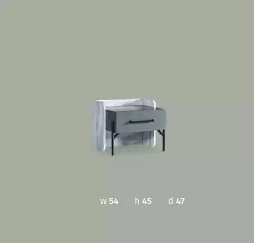 Introducing the 'Modern Bedside Table' in a sleek gray design, expertly crafted to bring style and functionality to your bedroom. With its compact dimensions of approximately 54 x 47 x 45 cm, this elegant nightstand fits perfectly beside any bed, providing a convenient surface for your nighttime essentials. The table's clean lines and contemporary aesthetic ensure it complements any modern decor, while the high-quality wooden construction promises durability and longevity. Its sophisticated gray finish adds a touch of timeless elegance, making it a stylish addition to any bedroom.