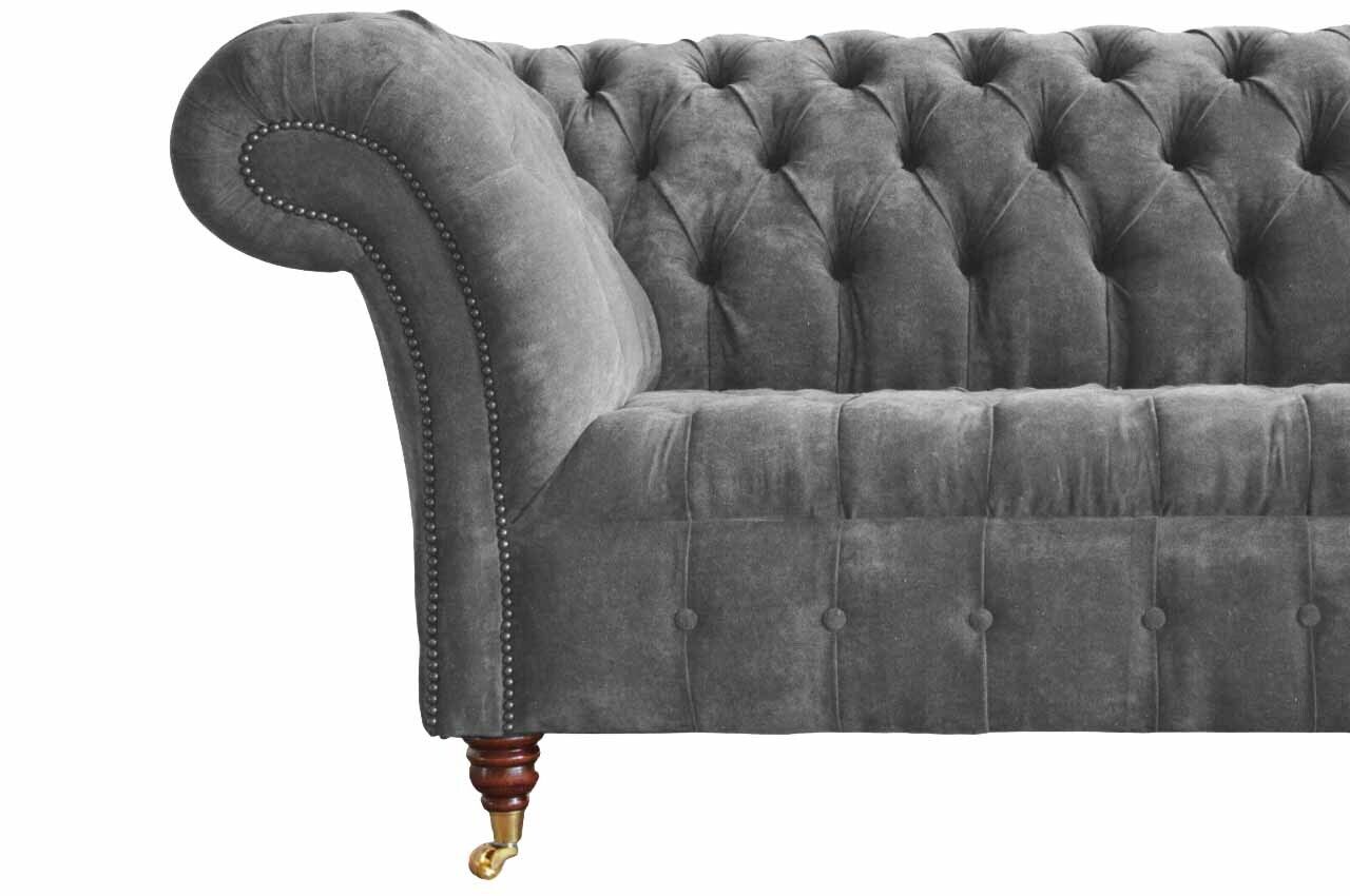 Chesterfield 3-seater couch upholstered seat textile fabric gray couches sofa