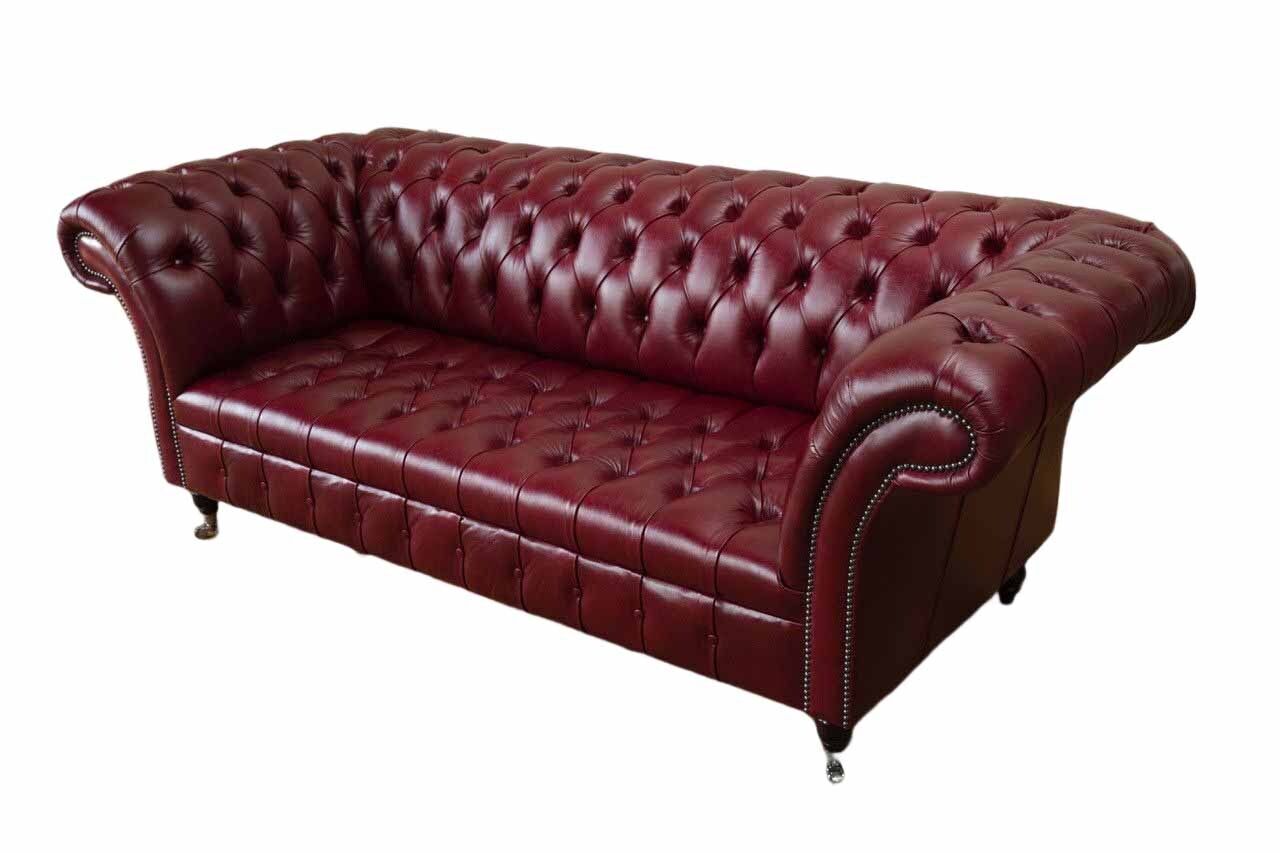 Chesterfield 3-seater leather couch upholstery luxury brown sofa furniture 230cm