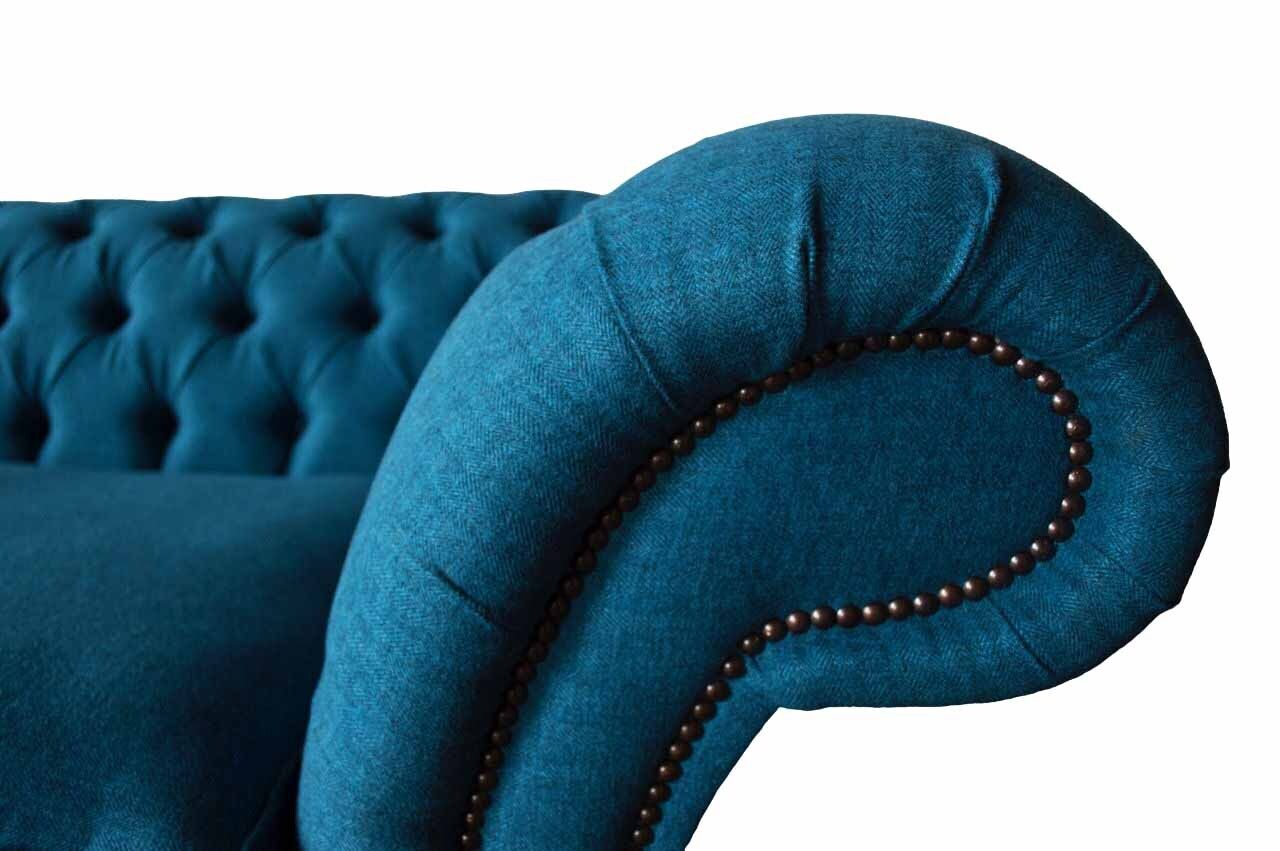 Chesterfield sofa 3-seater couch upholstered sofas fabric living room blue textile