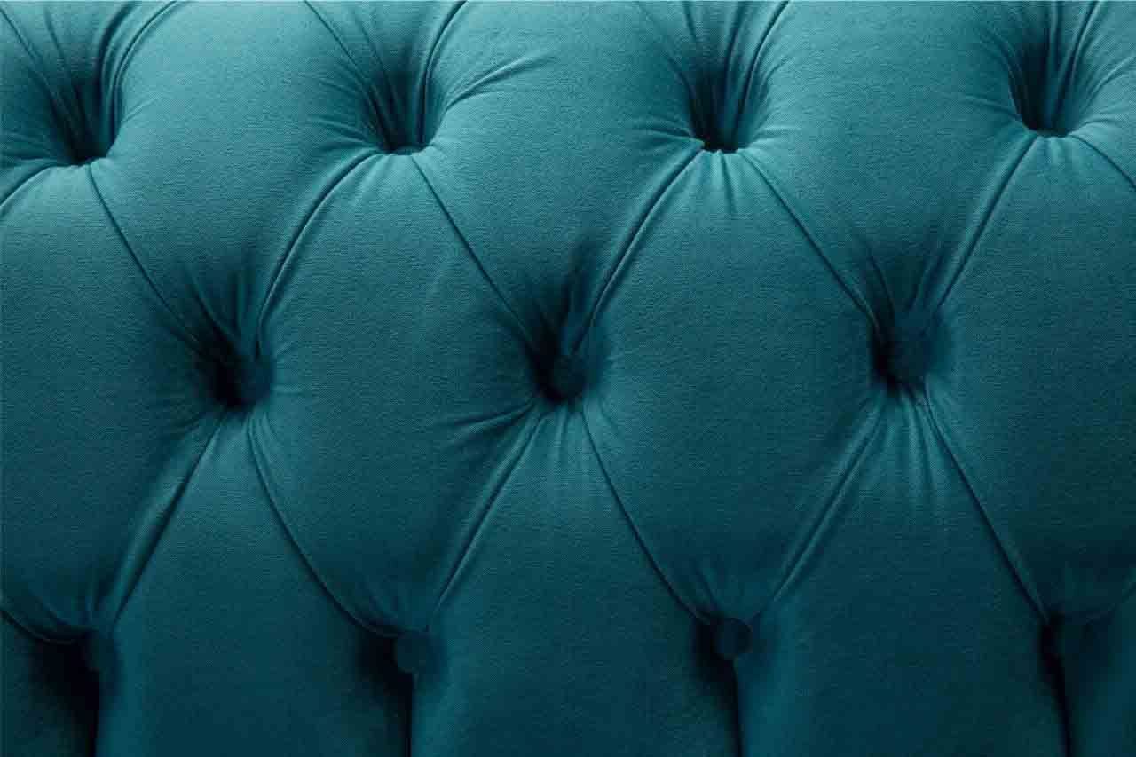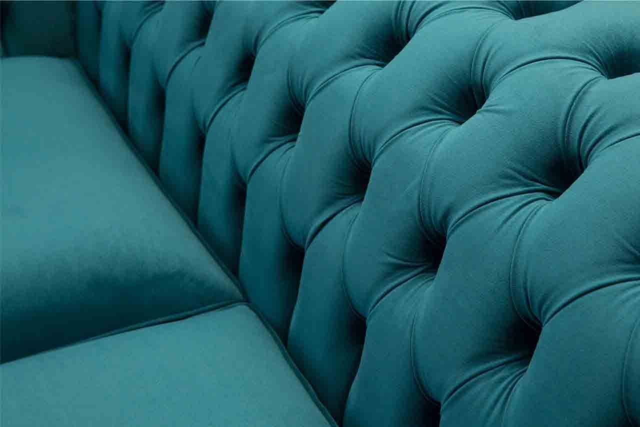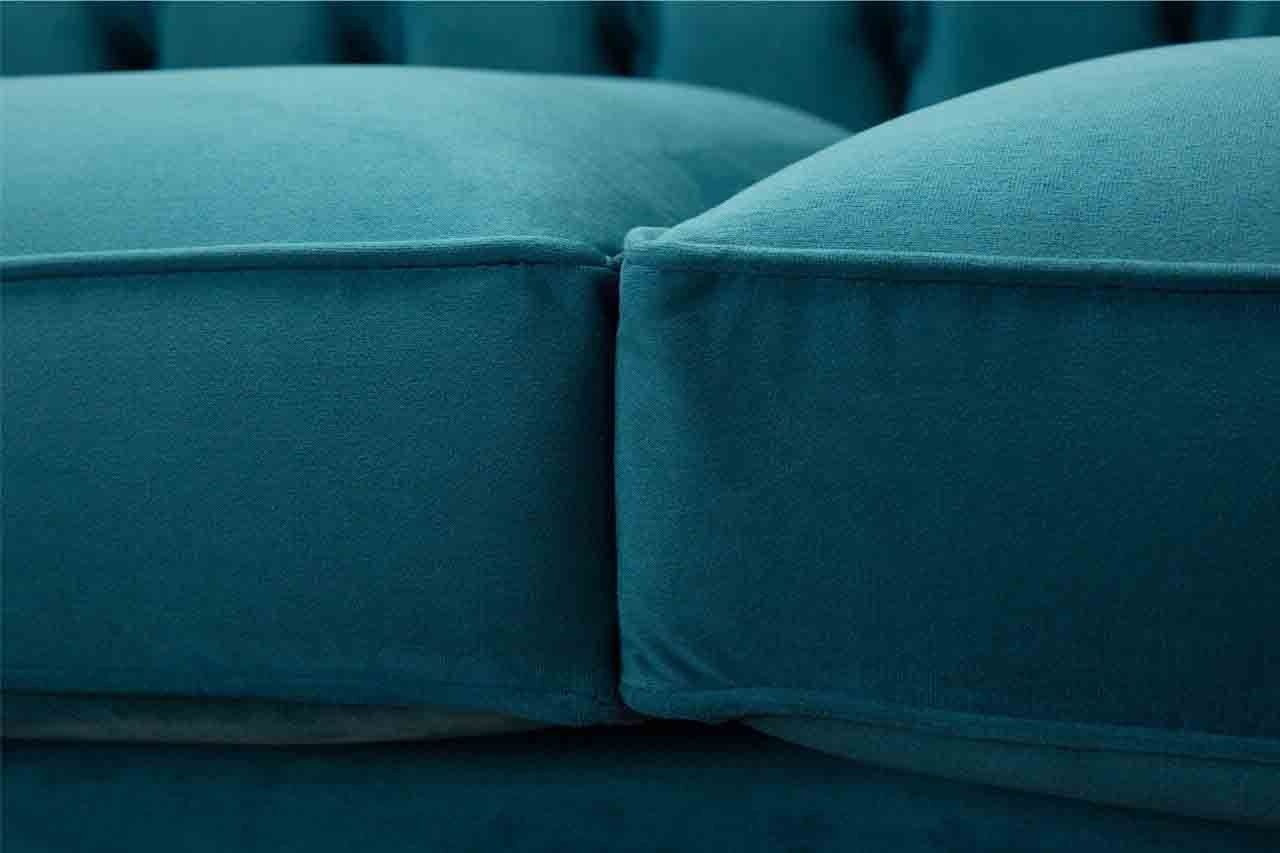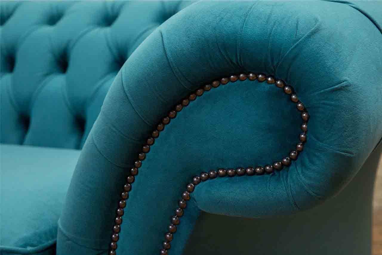 Chesterfield three-seater blue fabric living room design upholstered sofa