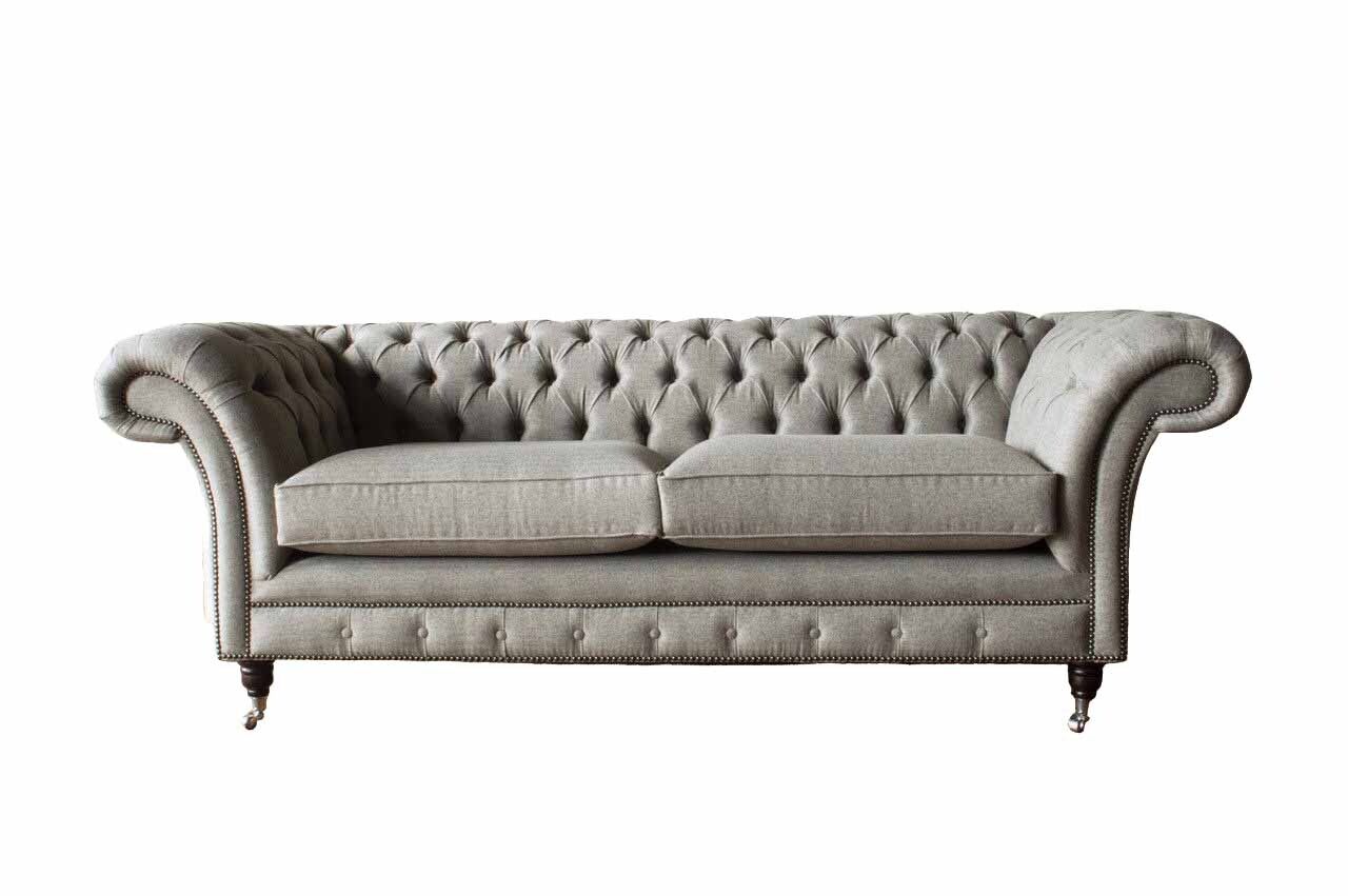 The English Chesterfield design combines classic aesthetics with modern functionality, making it a versatile addition to your home or workspace. Its customizable options, which include the choice of crystal stones or genuine Swarovski crystal stones instead of traditional buttons, allow personalized elegance to match your unique style. The potential to choose from a range of materials, such as premium genuine Italian cowhide leather or stain-resistant Magic Home fabric, provides flexibility to suit various practical needs and preferences. Whether placed in a formal office environment, adding grandeur to a meeting room, or serving as a cozy spot in a family living area, this sofa promises to deliver unmatched comfort and timeless appeal. Transform your space elegantly by including this remarkable three-seater, and enjoy the admiration it garners from all who encounter it.