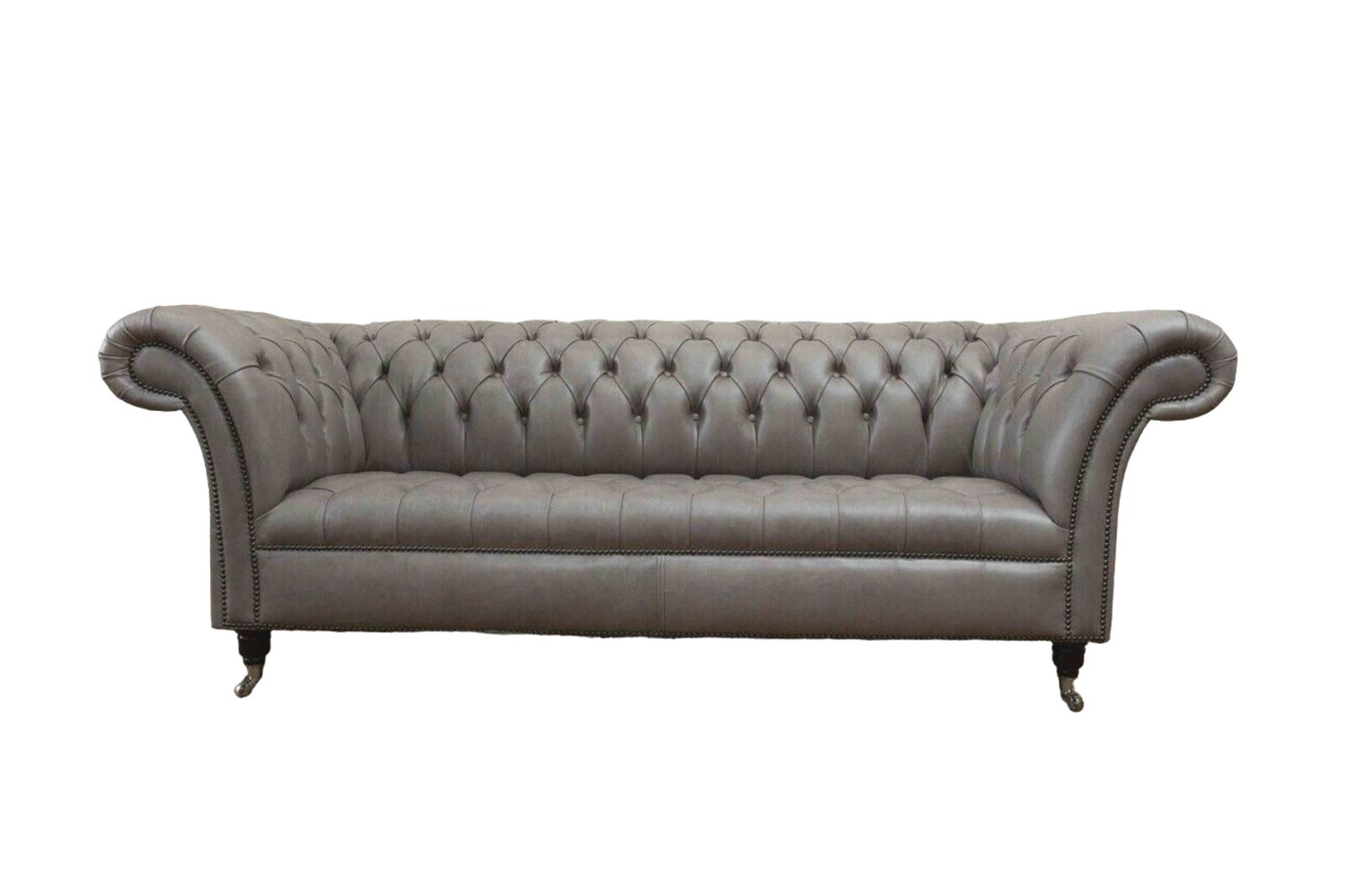 Gray Chesterfield English classic style sofa couch 3 seat cushion 230cm