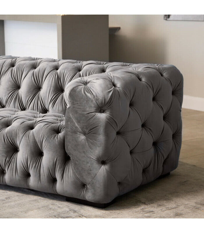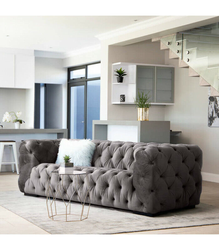 Gray Chesterfield Three-Seater Couch Upholstered Style Furniture