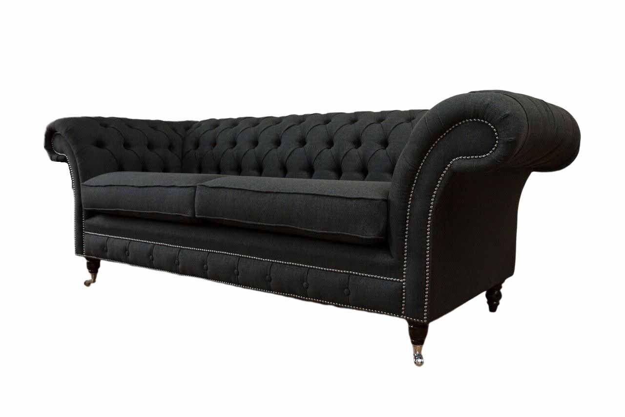 Living room sofa Chesterfield couch three-seater design black furniture new