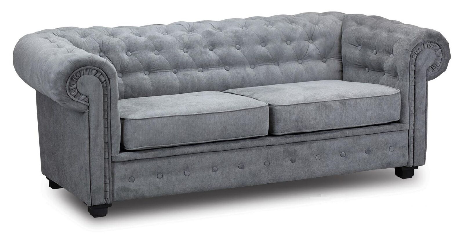 Whether you are furnishing a cozy apartment or styling a professional office lounge, this Chesterfield sofa makes for a sophisticated choice. Its compact design yet generous seating area ensures it will be the focal point of any room without overwhelming the space. The sofa arrives as part of a convenient package, making it an easy addition to your home. Its timeless Chesterfield design, characterized by its classic tufted detailing, complements both traditional and contemporary decor styles. Imagine unwinding after a long day or hosting friends in a setting that combines comfort and style effortlessly. The available fabric and color options allow you to express your individuality while maintaining the elegance of your environment. Let the 'Gray Chesterfield Sofa' be the centerpiece of your living area, inviting comfort and charm with each use.