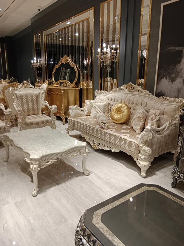 The 'Modern Living Room Set with Two Stylish 3-Seater Sofas and a Designer Armchair' transforms any living space into a haven of comfort and elegance. This exquisite set includes two expansive 3-seater sofas, each measuring approximately 220 x 74 x 125 cm, providing ample space for relaxation or entertaining guests. The accompanying designer armchair, sized at approximately 70 x 60 x 121 cm, adds a touch of sophistication and completes the ensemble. Crafted with a durable wooden frame, the set is elegantly upholstered in premium textile materials, ensuring both longevity and aesthetic appeal. The color palette, as shown, seamlessly blends with various interior styles, making this set a versatile addition to your home décor.