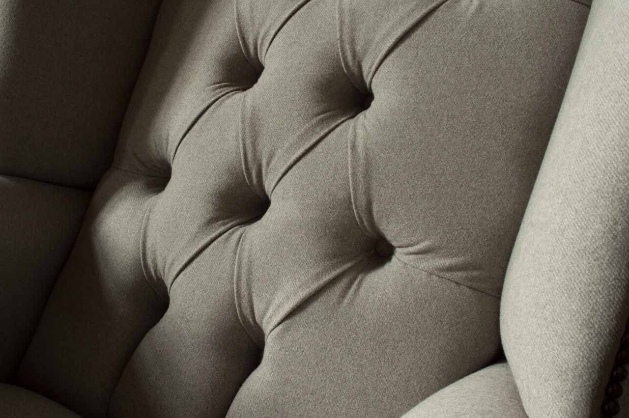 Gray wingback armchair armchair design upholstery Chesterfield fabric living room