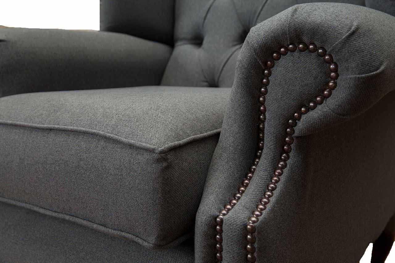 Gray Wing Chair Armchair Design Upholstered Sofa Couch Chesterfield Textile New