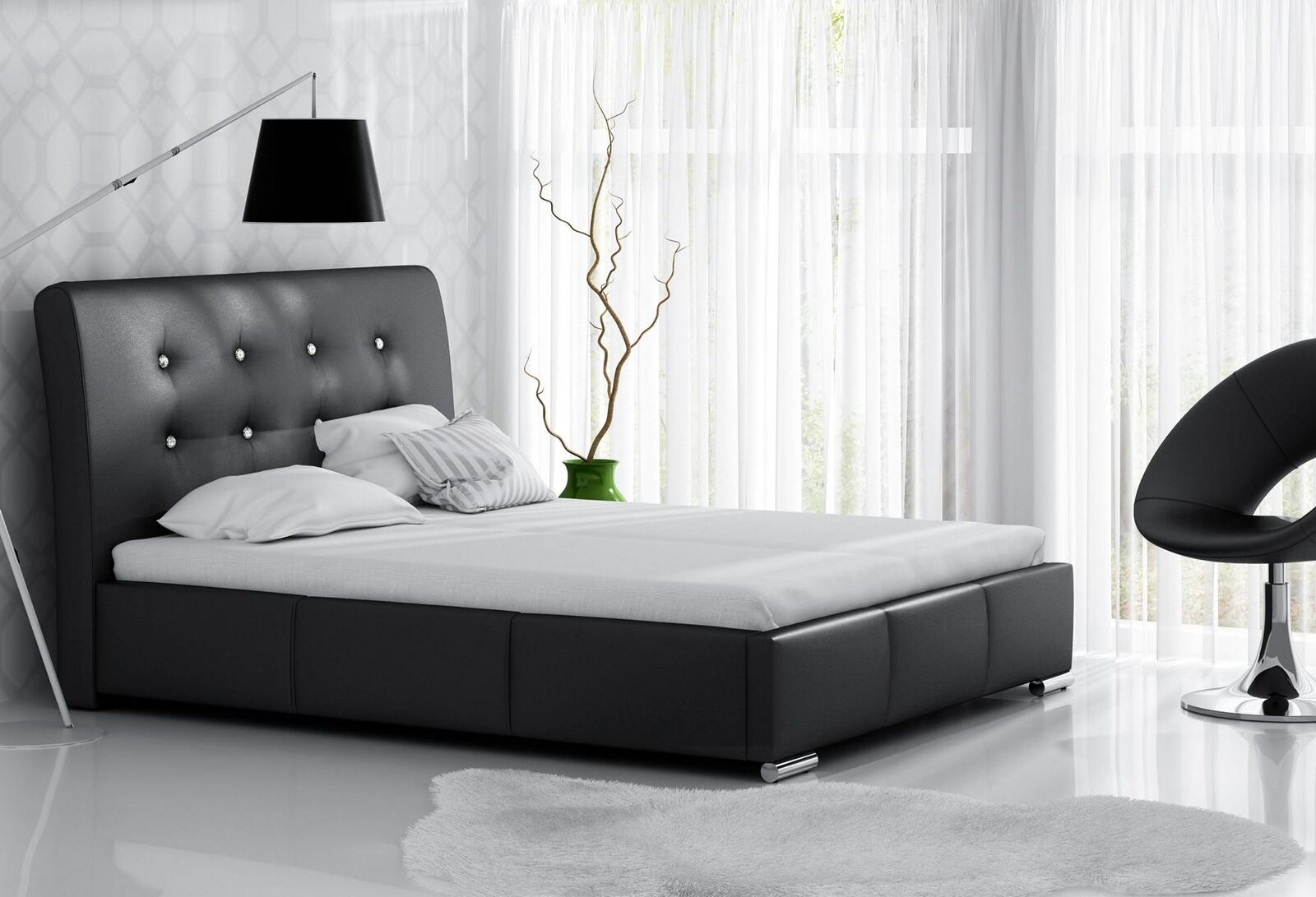 The 'Marital Bed Bed Frame' offers a fusion of contemporary elegance and practical functionality, making it a perfect centerpiece for any modern bedroom. With its generous lying surface measuring approximately 180 x 200 cm and a total width of 198 cm, this bed ensures ample space for a comfortable night's sleep. Its standout feature, a backward curved headrest padded with 5 cm of foam, provides exceptional comfort and style, further enhanced by a standard quilting adorned with crystals or optional upholstered button quilting. The bed’s sturdy metal frame supports 34 load-bearing flexible slats, ensuring durability and stability. Additionally, the inclusion of a 1000N gas lift highlights its engineering precision, providing easy access to an optional bed box that can be chosen for added convenience.