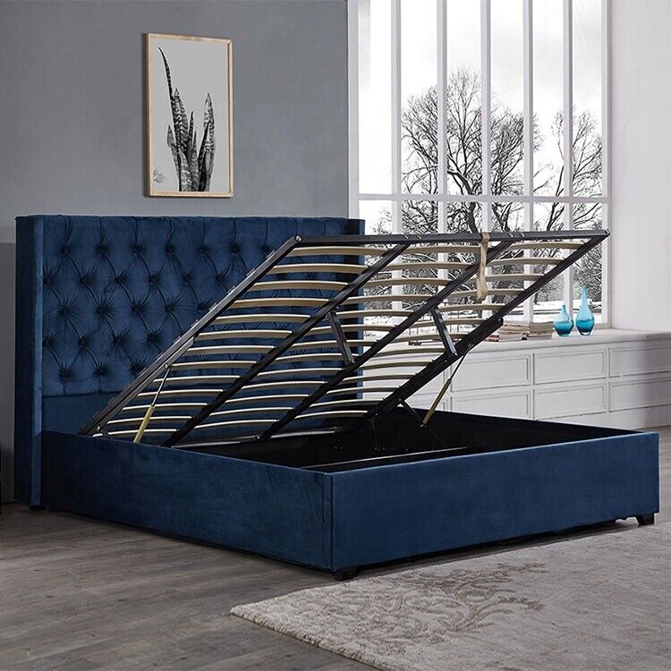Royal blue bedroom bed upholstery double beds Chesterfield design
