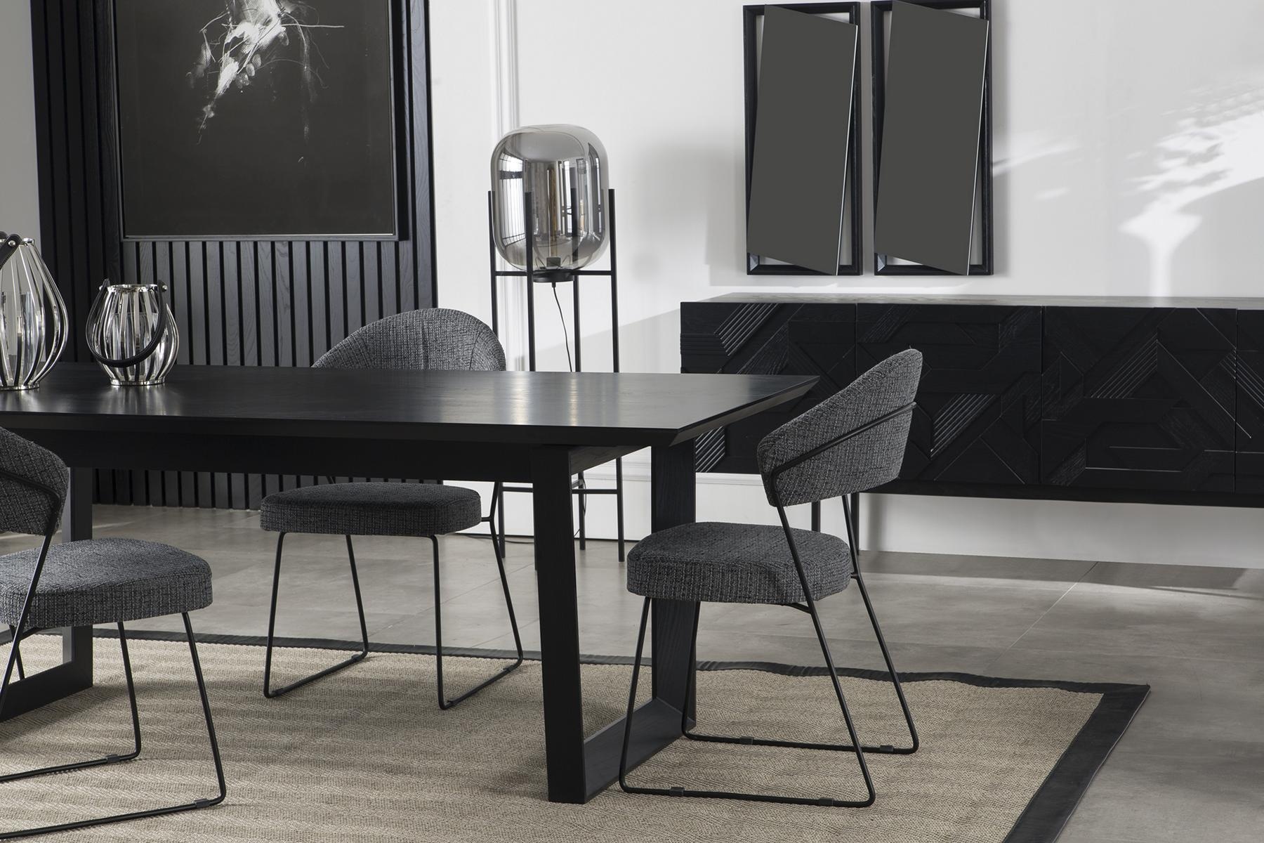 Elevate your dining experience with this exquisite five-piece dining set, featuring a sophisticated black polyester table accompanied by four plush chairs. Designed for those who appreciate the finer things in life, the sleek lines and sumptuous texture of this ensemble create an ambiance of understated luxury. The rich black hue complements a myriad of decor styles, ensuring it remains a timeless centerpiece in your home. Crafted with meticulous attention to detail, this dining set embodies the brand’s two-decade legacy of luxury furniture design. Embrace an exclusive lifestyle where every meal becomes a celebration, and every gathering is a testament to refined elegance. This dining set is not merely furniture; it is an invitation to indulge in the art of sophisticated living.