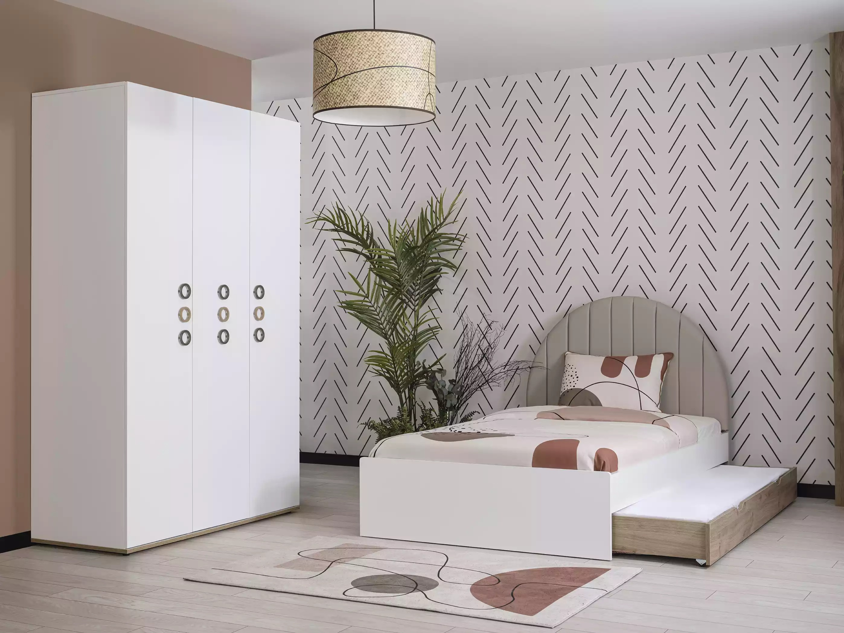 This versatile children's bed frame is not only ideal for a peaceful night's sleep but also functions as a cozy haven for daytime play and relaxation. The wooden construction provides durability, making it an excellent investment in your child's comfort and well-being. The neutral white color creates a calming atmosphere, conducive to creativity and rest. Whether it's story time before bed or a lazy weekend morning, this bed frame can easily adapt to various day-to-day activities. Its ergonomic design supports growing bodies, ensuring that your child gets the restful sleep they need. Give your child's room a touch of modern elegance and practicality with this outstanding bed frame.