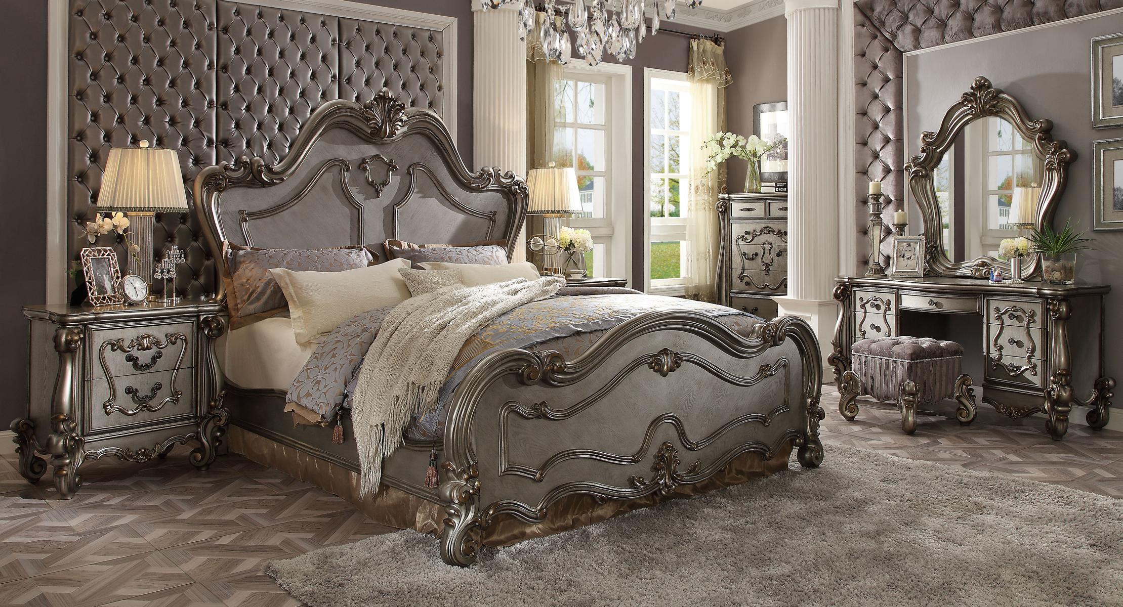Classic Bedroom Set Bed 2x Nightstand Chest of Drawers Mirror 5-piece.
