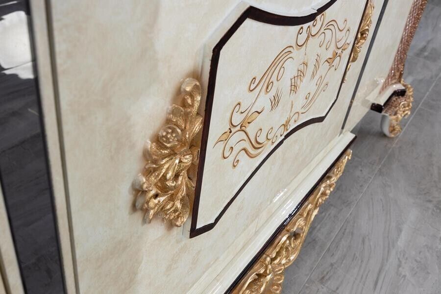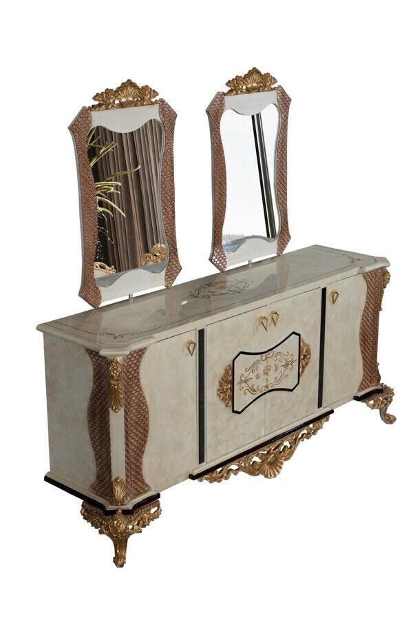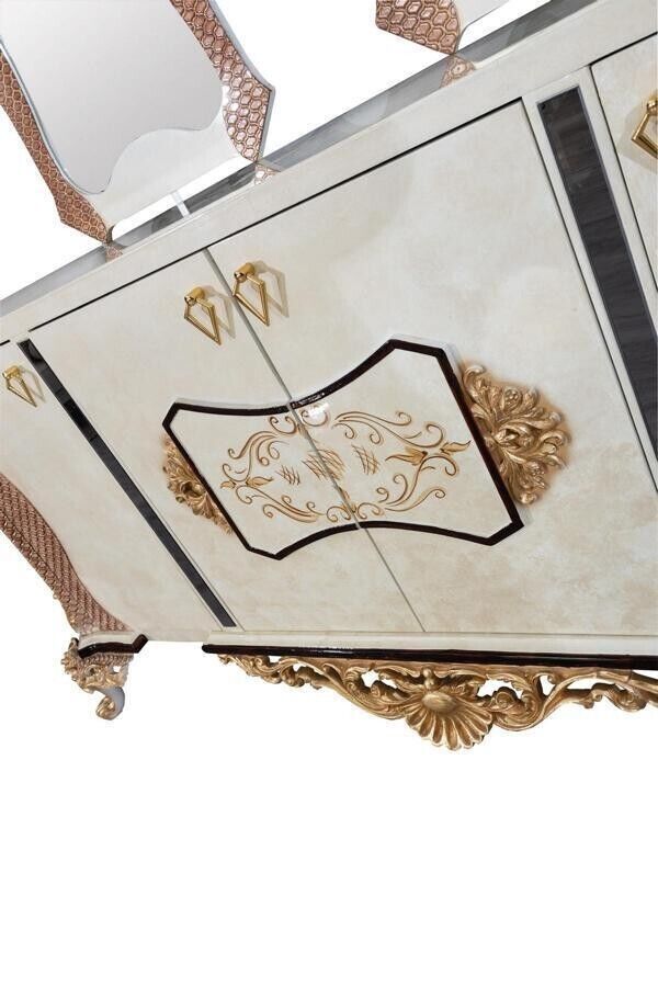 Luxury dining room set 9 pcs. Dining table + 6x chairs + sideboard with mirror white new