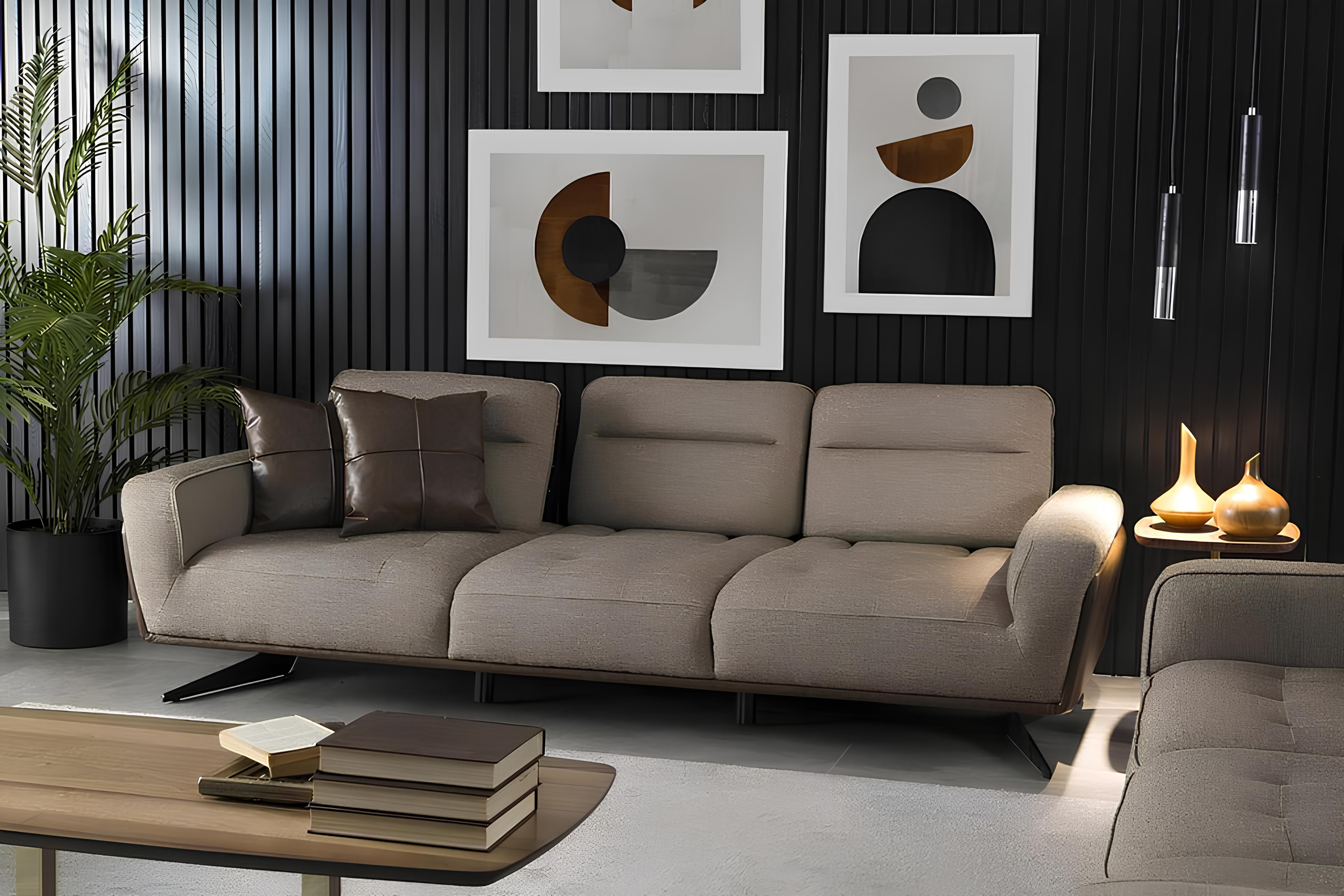 Indulge in the sophistication of the Sofa Set 4+1 with Low Table, a meticulously crafted ensemble that embodies luxury and comfort. This three-piece soft furniture set, enveloped in rich brown polyester, exudes an aura of refinement, making it an exquisite addition to any exclusive living space. The sumptuous cushions invite relaxation, while the sleek lines and elegant silhouette enhance the aesthetic of your home. Designed for discerning tastes, this set effortlessly balances style and functionality, serving as a focal point for gatherings or quiet evenings. Elevate your lifestyle with a piece that reflects over 20 years of dedication to luxury furniture, transforming your home into a sanctuary of elegance.