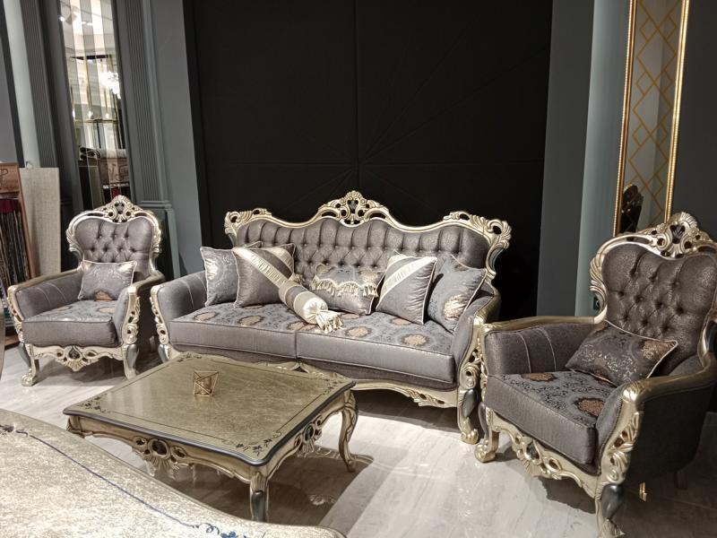 The 'Exclusive Sofa Set 3+3+1' is a luxurious three-piece ensemble designed to enhance any living space with its elegance and comfort. Comprising two three-seater sofas and a matching armchair, this set is crafted with meticulous attention to detail. Measuring approximately 218 x 87 x 120 cm, each sofa offers abundant space for family gatherings or entertaining guests, while the armchair, at 87 x 85 x 120 cm, provides a snug and stylish seating option. The set is constructed from high-quality wood and upholstered with premium textiles, ensuring a durable and comfortable seating experience. The bespoke nature of this set allows for color customization upon request, so you can tailor it to complement your interior design scheme perfectly. With its sleek lines and sophisticated style, this sofa set is more than just furniture—it's a statement piece that elevates any room.