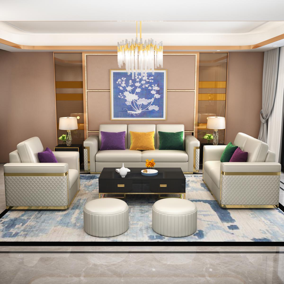 Introducing the 'Design Upholstery Luxury Seat Sofa,' a sophisticated and stylish addition to any living space. This **3-seater faux leather couch** combines elegance with functionality, making it perfect for both modern and classic interiors. With dimensions of approximately 210 cm in length, 86 cm in height, and 92 cm in depth, it provides ample seating space without overwhelming your room. Crafted from a blend of high-quality materials including **real wood inner frame, stainless steel accents, and premium faux leather**, this sofa is designed for durability and easy upkeep. The **spring core sub-spring** ensures lasting comfort, while the refined aesthetics elevate any setting. Available in the color shown, with other hues possible upon request, this piece effortlessly complements different color schemes and design preferences.