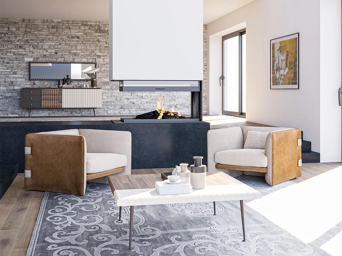 Living room set 3-piece, 2x beige armchairs, upholstered furniture, luxury wood coffee table
