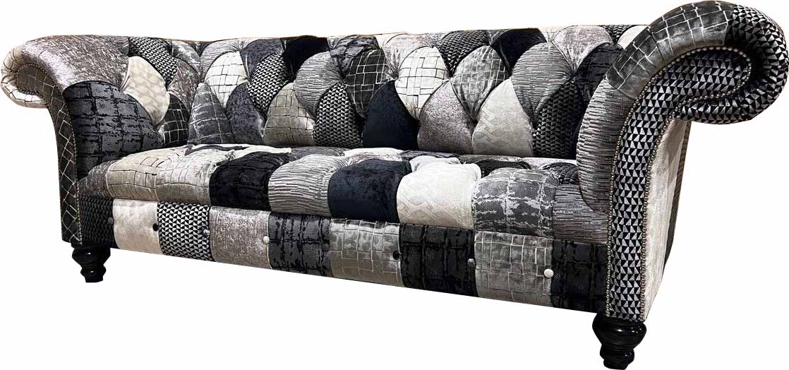 The 'Luxurious velvet sofa in Chesterfield design with colorful checks' is the epitome of sophisticated comfort and style. Measuring approximately 230 x 80 x 90 cm, this 3-seater sofa offers ample space for you and your guests to relax in ultimate comfort. Its elegant design is accentuated by the signature Chesterfield tufting, giving it a classic yet modern appeal. The sofa is available with a free choice of colors, allowing you to customize it to your personal taste. Crafted with high-quality materials, including a robust inner frame made of natural wood, this sofa promises durability and longevity. For those seeking an extra touch of opulence, opt for the plush comfort of our premium velvet fabric or the timeless elegance of 100% full leather for an additional cost.