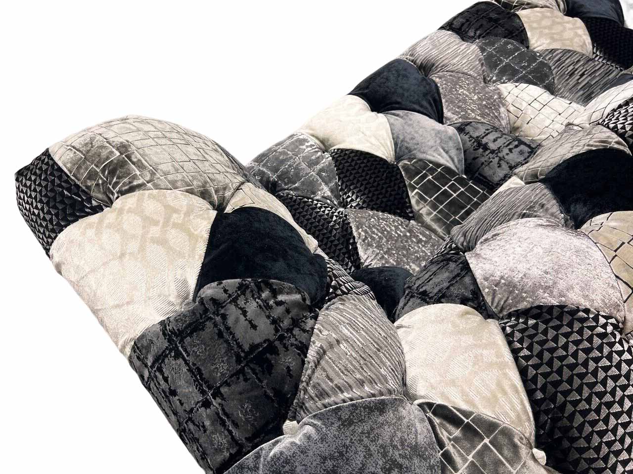 This luxurious piece is more than just a seating solution; it's a statement of style and a centerpiece for any living space. Whether you're hosting an elegant cocktail party or enjoying a quiet evening at home, this sofa provides the perfect backdrop. The versatile design includes optional bed functionality, making it ideal for accommodating overnight guests with added convenience. Choose from various sizes, including 5-seater, 4-seater, and 1-seater options, to best fit your space. Add a touch of sparkle with optional crystal stones or even genuine Swarovski elements, transforming your living room into a space of shimmering elegance. Experience the seamless blend of luxury and function with the 'Luxurious velvet sofa in Chesterfield design with colorful checks'.