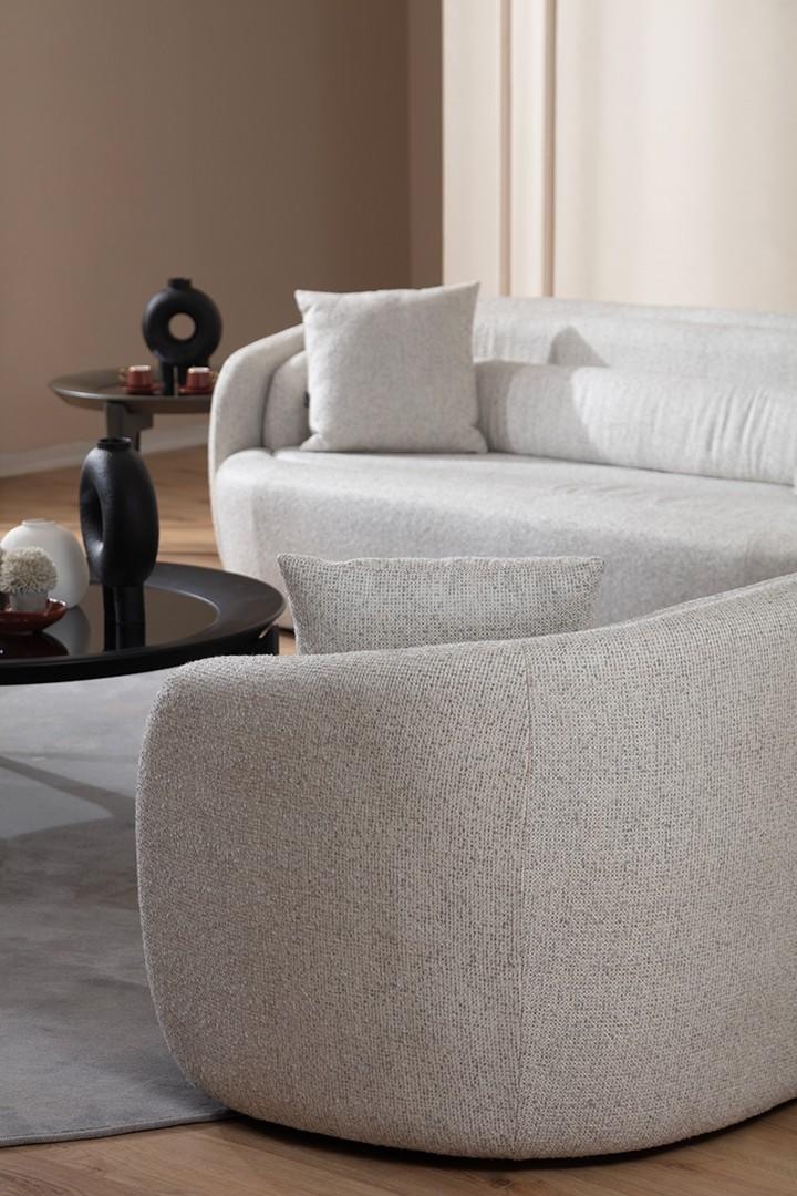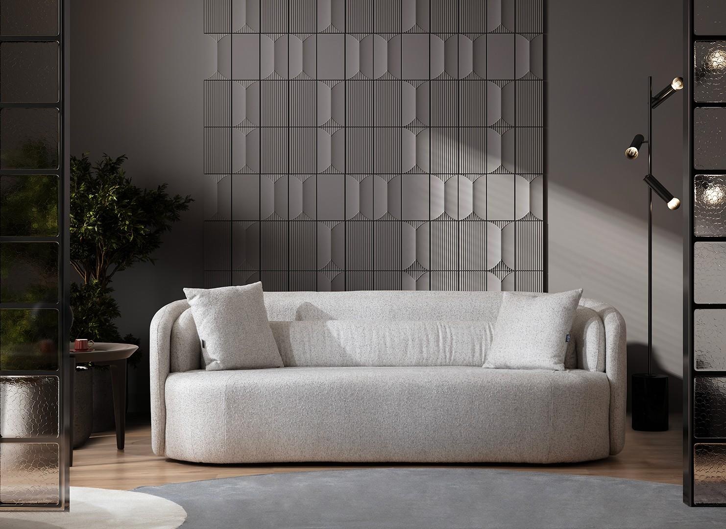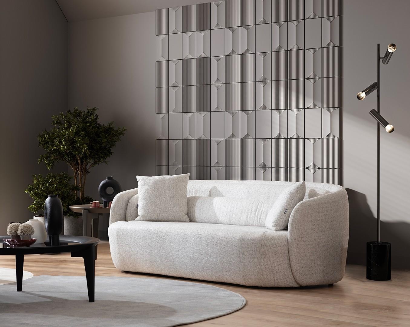 Indulge in the epitome of sophistication with our 220 cm three-seater sofa, expertly upholstered in the finest white polyester. This distinguished piece harmoniously blends comfort with contemporary elegance, making it a quintessential addition to any luxurious living space. Its generous dimensions invite relaxation, while the pristine fabric exudes a timeless allure, effortlessly complementing a variety of sophisticated interiors. Crafted with impeccable attention to detail, this sofa not only serves as a focal point but also embodies an exclusive lifestyle, reflecting your discerning taste. Elevate your home ambiance with this exquisite creation, a testament to two decades of luxury craftsmanship.
