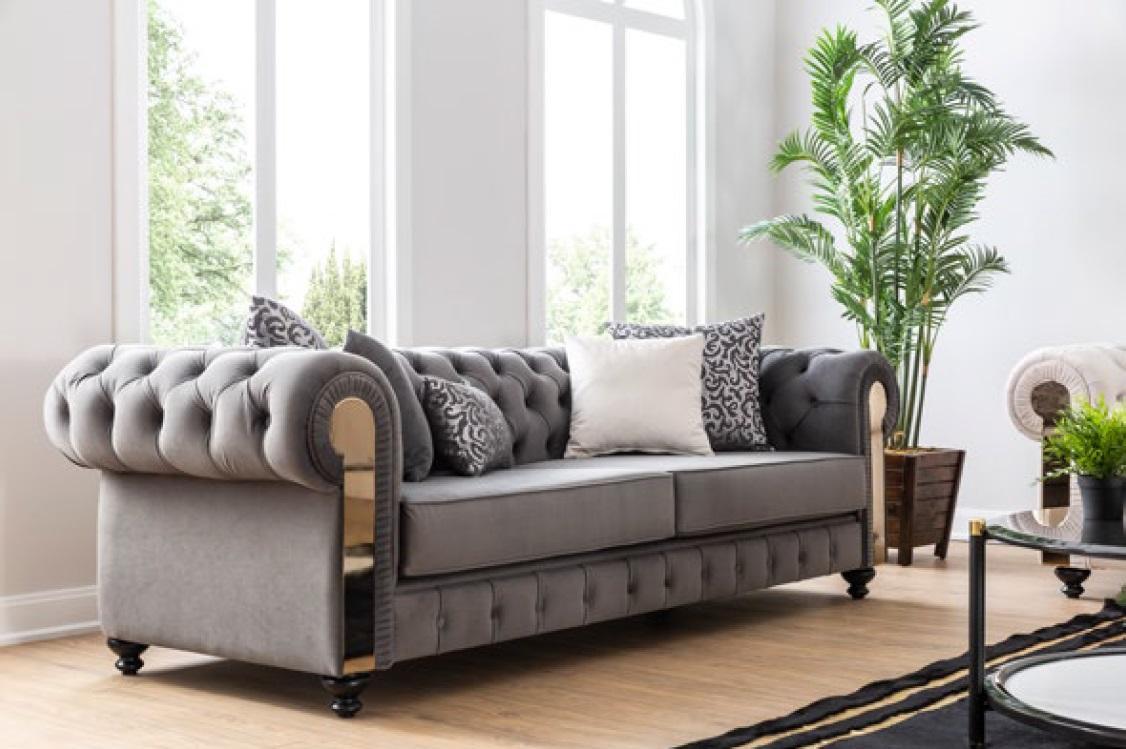Luxury living room sofa 3-seater gray Chesterfield classic couches