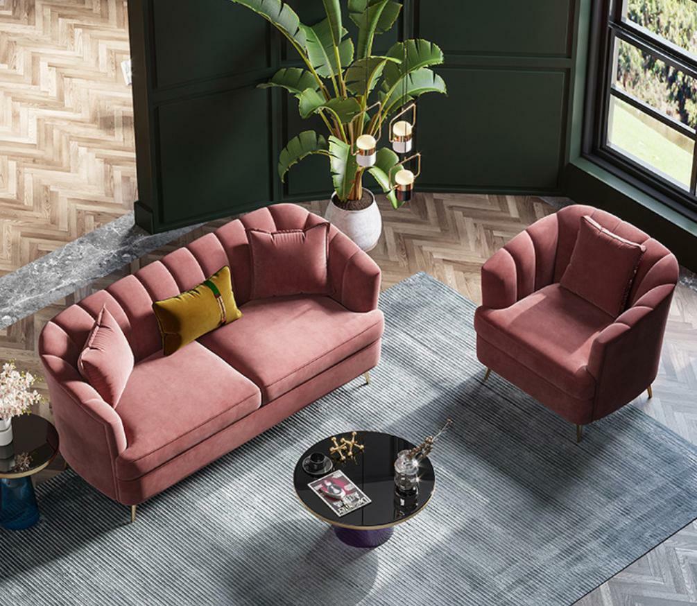 Introducing the 'Including Living Area with Relax Seating Design Couch Lounge Sofas Textile Sofa 3-Seater', a luxurious addition to any modern living space. With a generous size of approximately 207 x 94 x 88 cm, this exquisite sofa offers ample room for relaxation while maintaining a sleek and stylish appearance. The outer upholstery is crafted from sumptuous velvet, providing a smooth and cozy texture that enhances comfort. The durable inner framework is constructed from solid wood, ensuring longevity and stability, while high-density foam cushions offer superior support, inviting you to sink into unparalleled comfort. Complemented by elegant stainless steel details, this 3-seater is designed to make a statement while offering exceptional comfort.