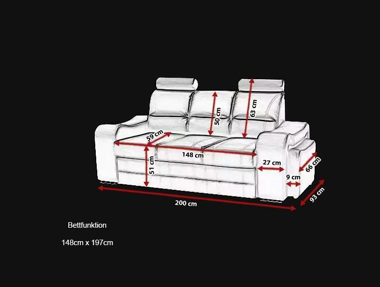 Introducing the 'Sleeper Sofa Folding Couch 3-Seater with Sleeping Function + Storage Sofa Couch Folding Sofa,' a versatile and stylish solution for your living space. This elegant piece, identified by Article No. EAN: 4260533186503, offers more than just seating; it transforms effortlessly into a spacious bed with a lying surface of approximately 148 x 197 cm. Designed with comfort and convenience in mind, the sofa boasts an inner frame made of genuine wood and a robust spring core for enhanced support. Customize the sofa to suit your decor with a free choice of color in either Fabric or Premium Faux Leather, with additional upscale materials available for an extra charge. Moreover, the incorporation of a practical bed box ensures you always have ample storage space, perfect for your linens or other essentials.