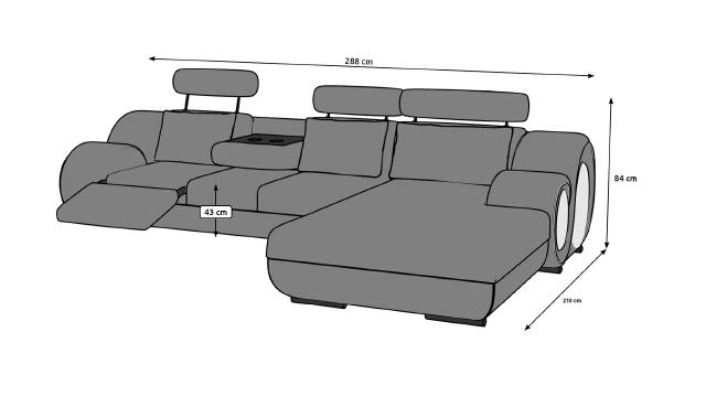 Enhance your living room setup with additional features available in our shop, such as the **Electric Relax Footrest** and **Cup Holder Fridge**, tailoring the sofa to your lifestyle needs. Imagine winding down with a movie, as the integrated **sound system** fills the room with immersive audio, or set the perfect ambiance with optional **undercarriage lighting** that offers a range of colors via remote control. This sofa is crafted with an **inner frame of real wood** and a high-quality **spring core**, promising long-lasting support and resilience. Whether you choose from a variety of materials, including **Premium Genuine Leather**, **Textile Fabric**, or **Full Leather**, this corner sofa makes a bold statement in both style and innovation, transforming any living area into a luxurious retreat.