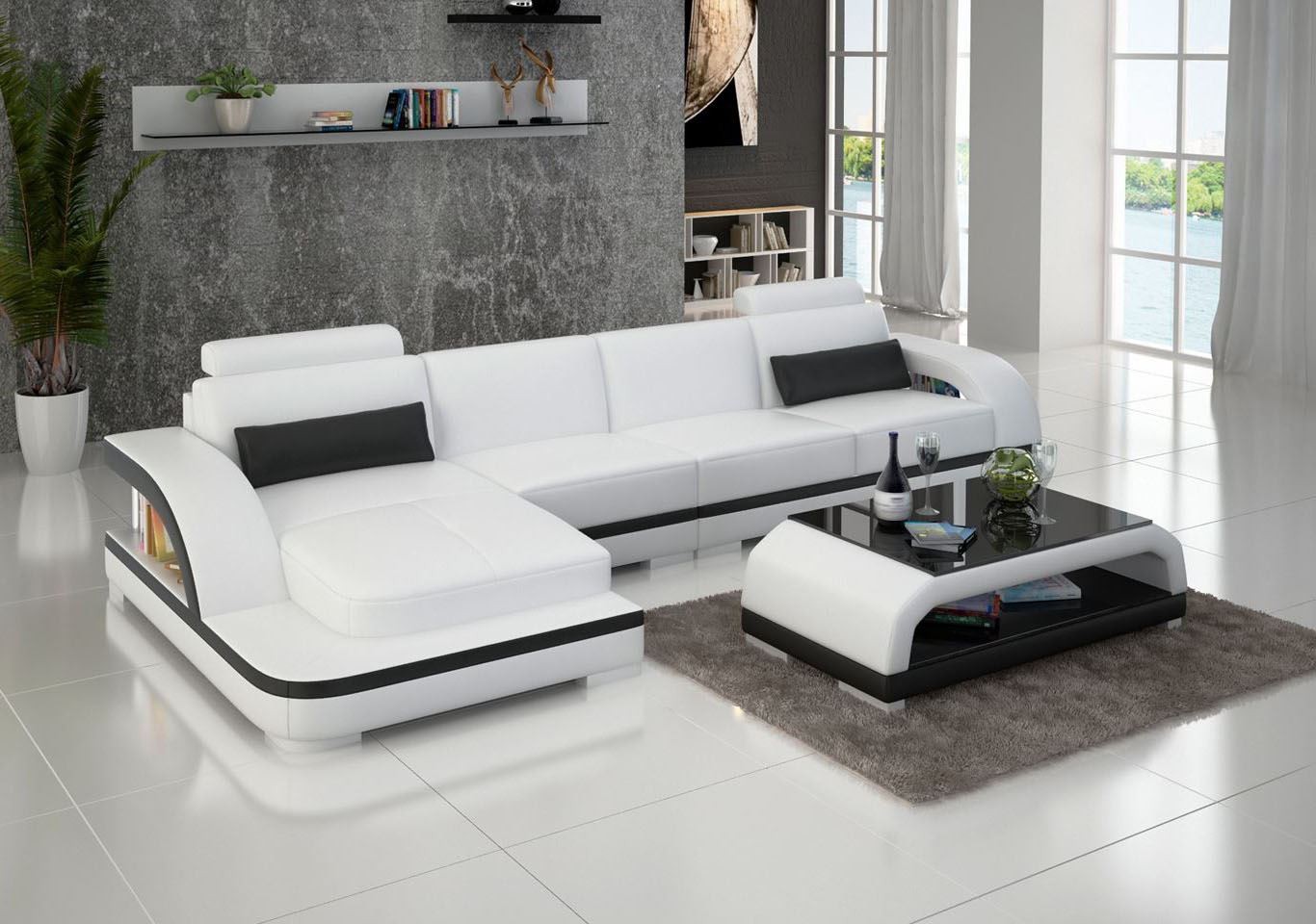 Leather sofa L-shape couch living area corner sofa decor set design modern