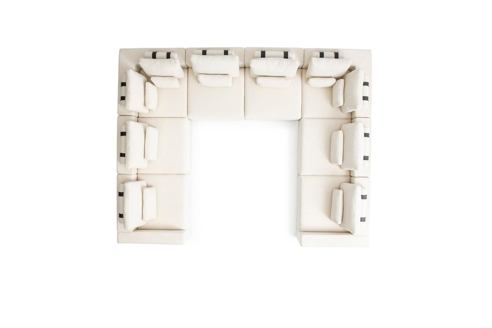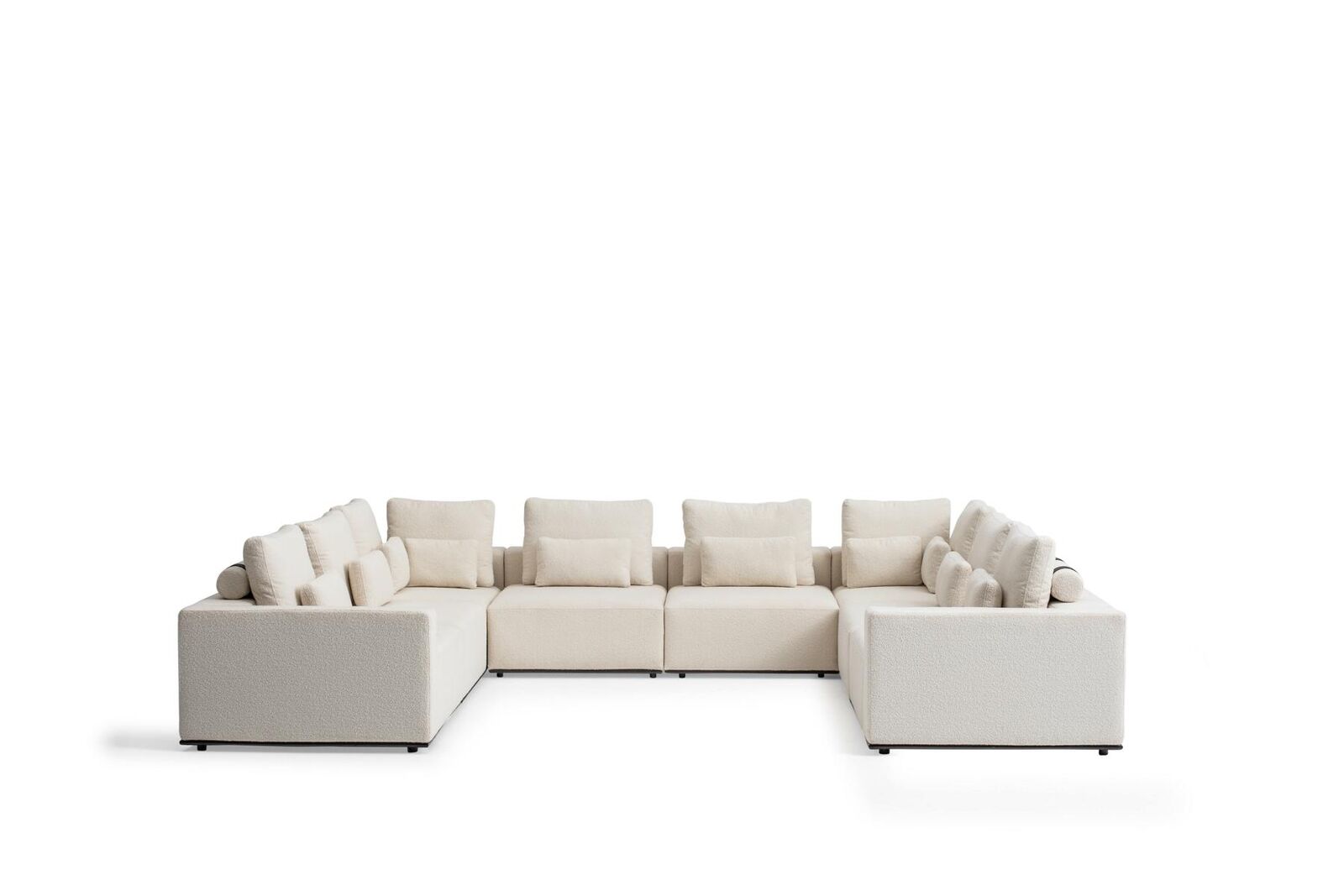 Introducing the 'Seating Corner Corner Suite', a sophisticated and spacious addition to your living room furnishings. Crafted with an expansive U-shape design, this corner sofa provides ample seating space, making it perfect for entertaining guests, family gatherings, or simply relaxing in style. With dimensions measuring approximately 306 x 392 x 306 cm, this suite envelops a room with its presence while offering comfort and functionality. Its elegant design, paired with durable materials, combines a robust wooden frame with high-quality textile upholstery for both a chic look and long-lasting durability. The sofa's thoughtful height adjustment, including a seat height of 40 cm and a seat depth of 56 cm, ensures ergonomic support and ultimate relaxation.