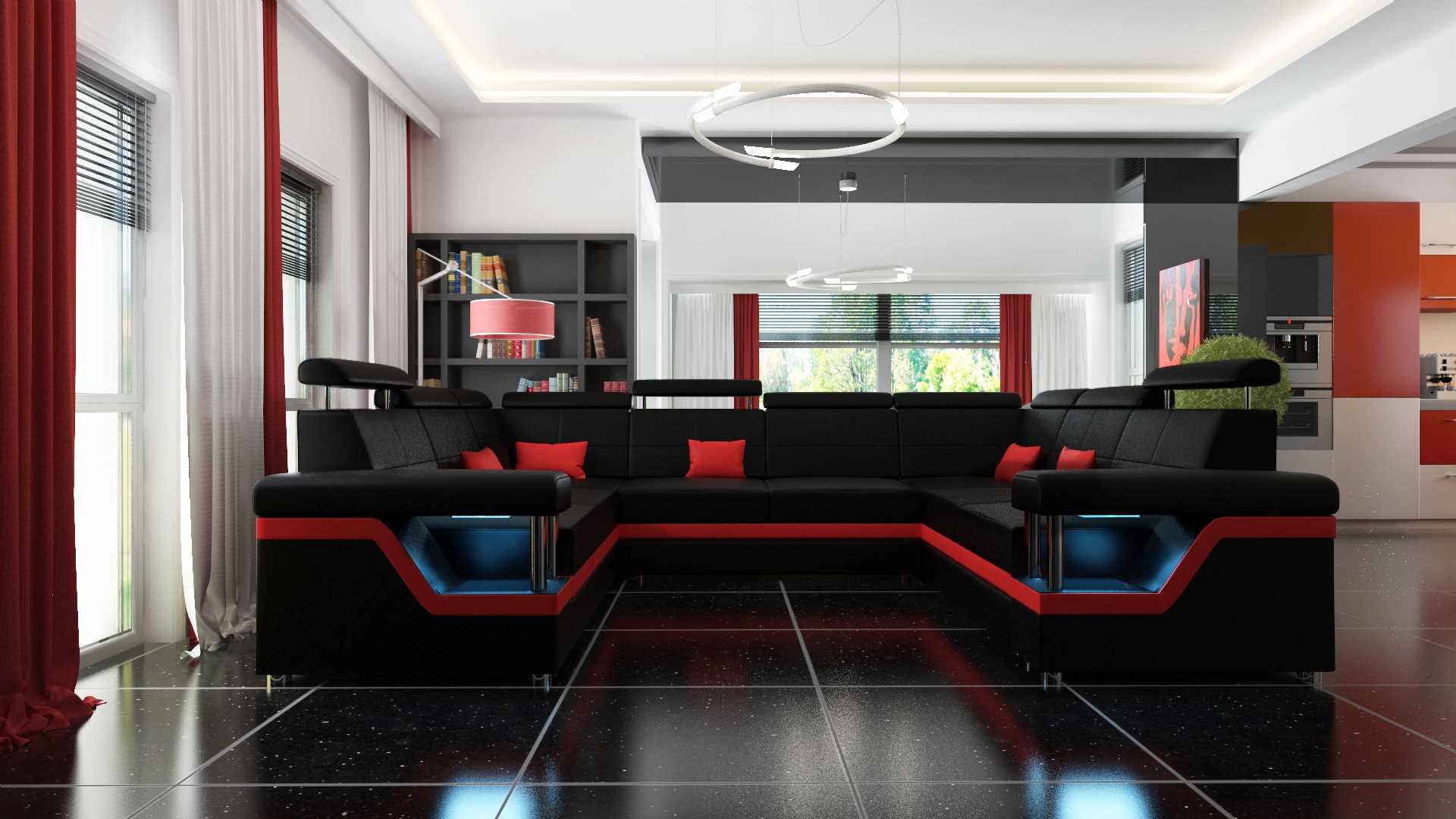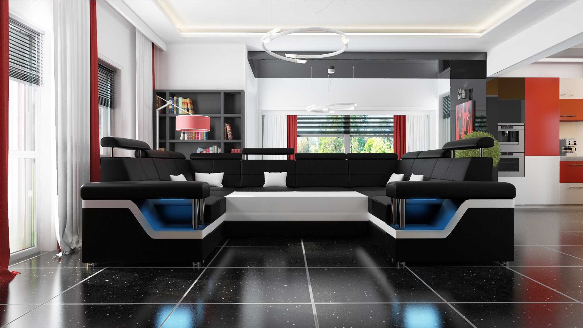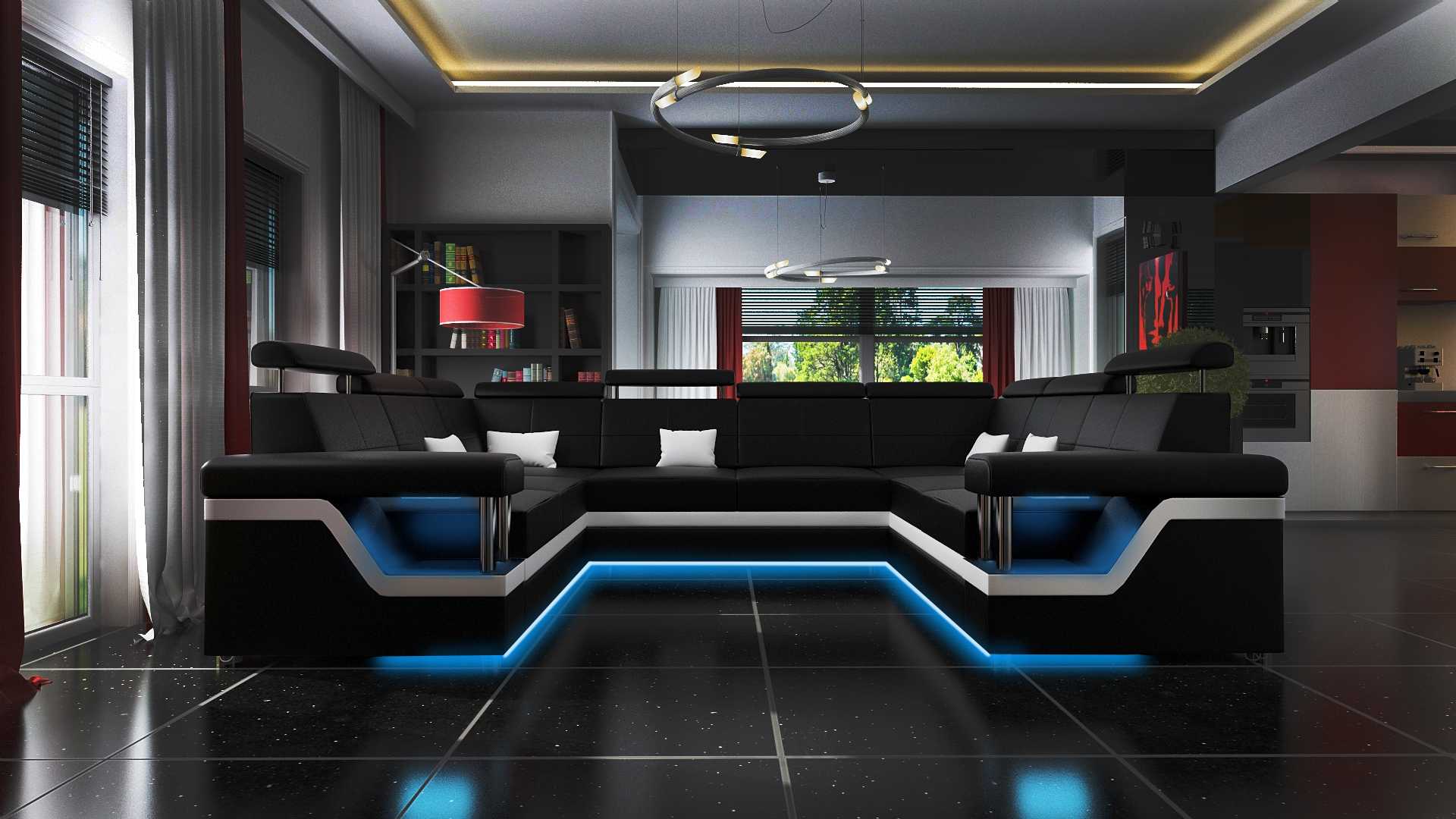 Sectional living room landscape sofa couch U-shape upholstered couches leather design illuminated