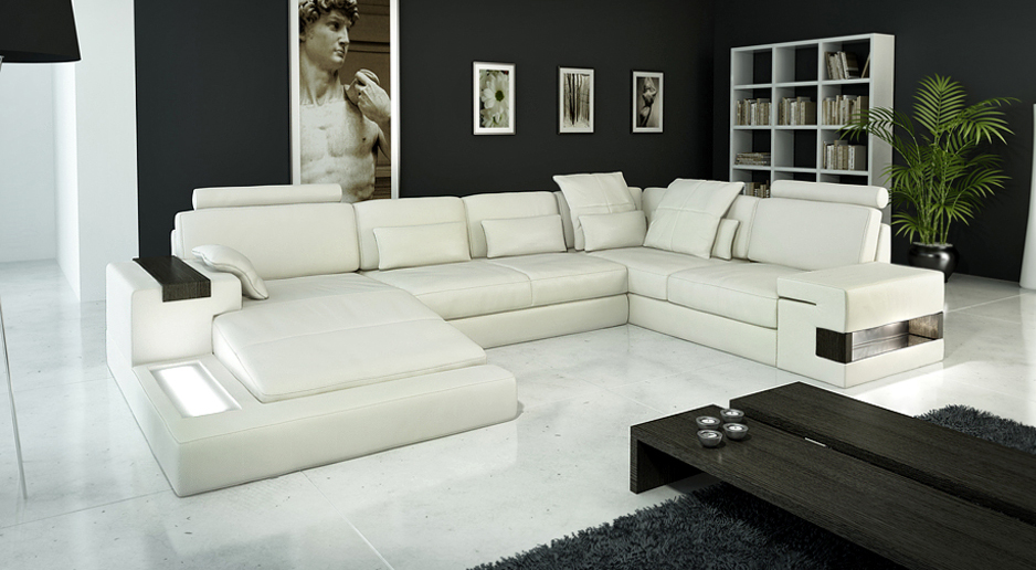 Leather Design Sofa Couch Upholstered Corner Sofa Suite Living Landscape Corner Sofa with USB