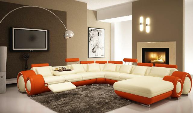 Leather sofa, corner sofa, sectional sofa, couch, upholstered leather seating set, living area.