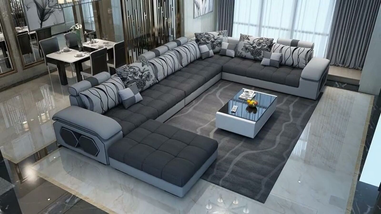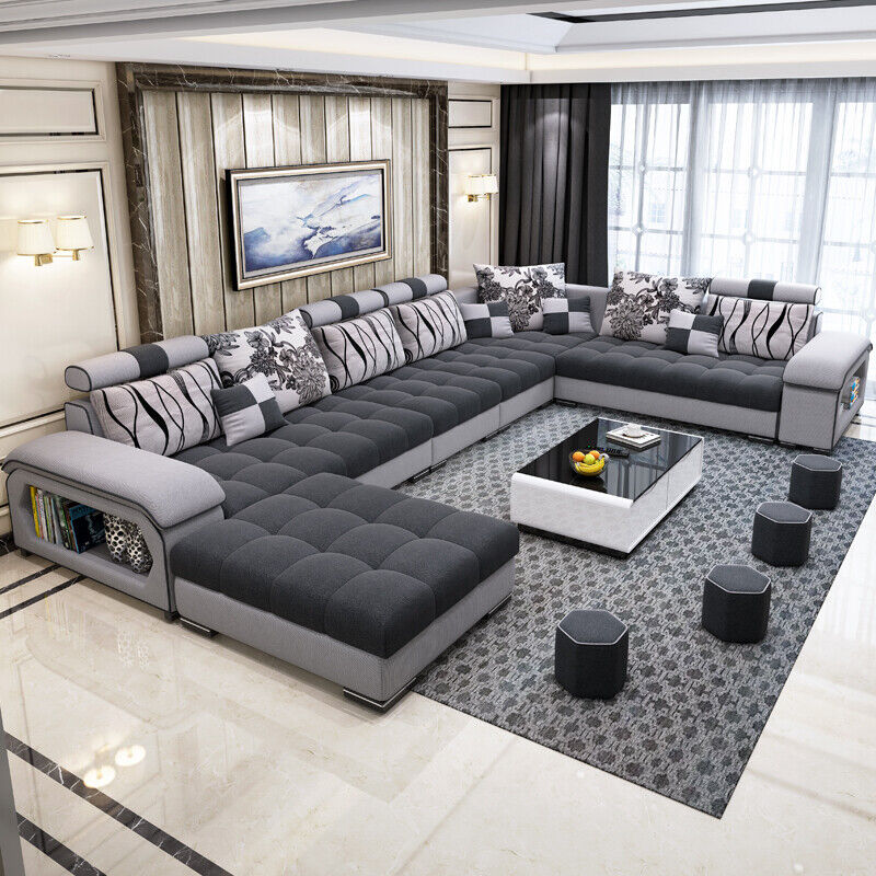 Living area corner sofa U-shaped sofa couch leather design couch fabric