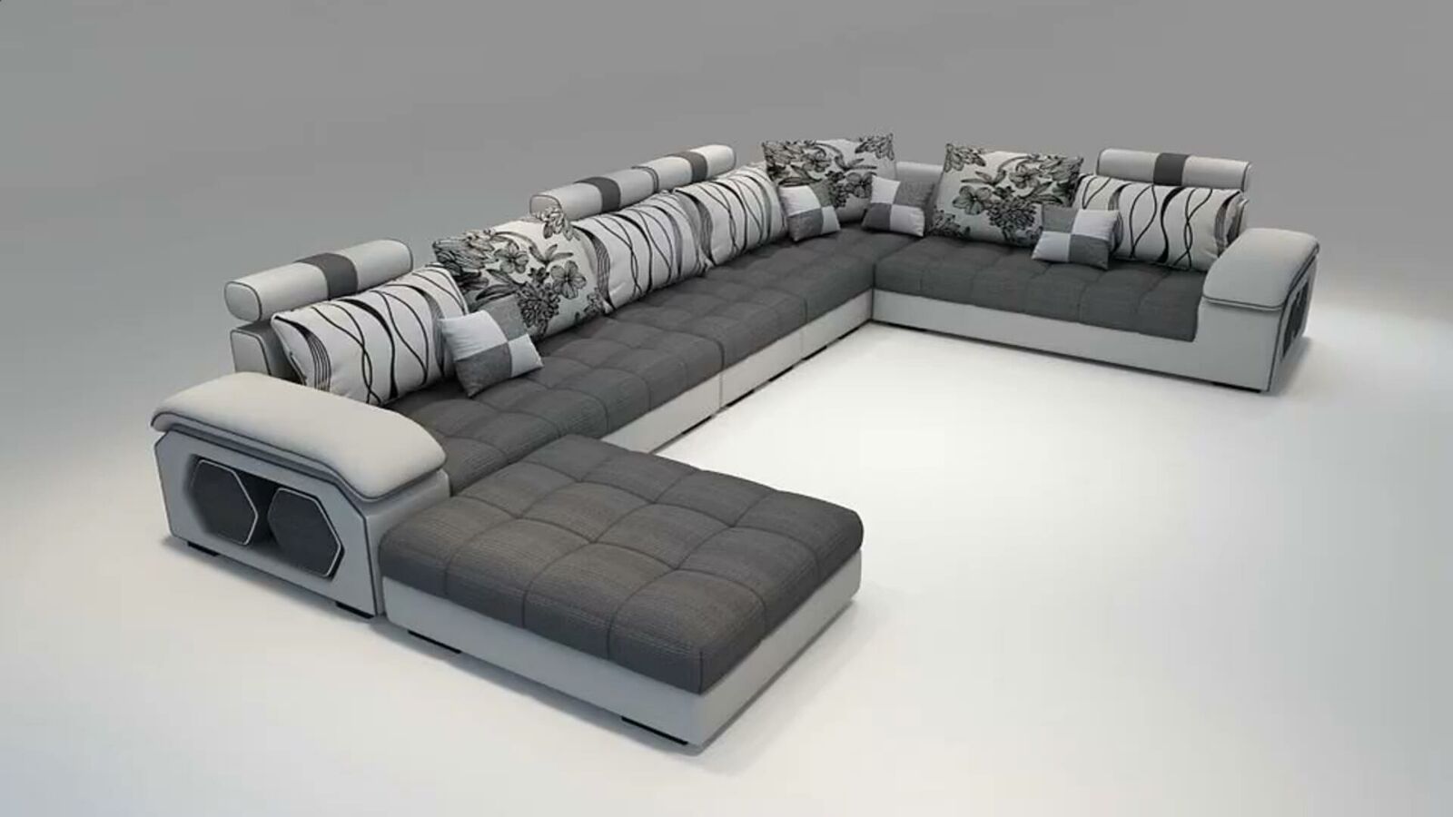 This U-shaped sofa couch is not only a seating solution but also a style statement that enhances the ambiance of your living room. With its generous seating depth of approximately 58 cm and a seat height of approximately 36 cm, it ensures comfort for everyone, whether you're binge-watching your favorite series or hosting a family gathering. The mix of premium materials used on the seat surfaces, backrests, and armrest interiors adds depth and texture to its overall design. Opt for the additional materials available at a surcharge if you're looking to personalize your sofa to your taste. Whether placed in a spacious loft or a cozy family room, this sophisticated sofa brings both aesthetics and functionality to your living area, making it an investment in comfort and style.