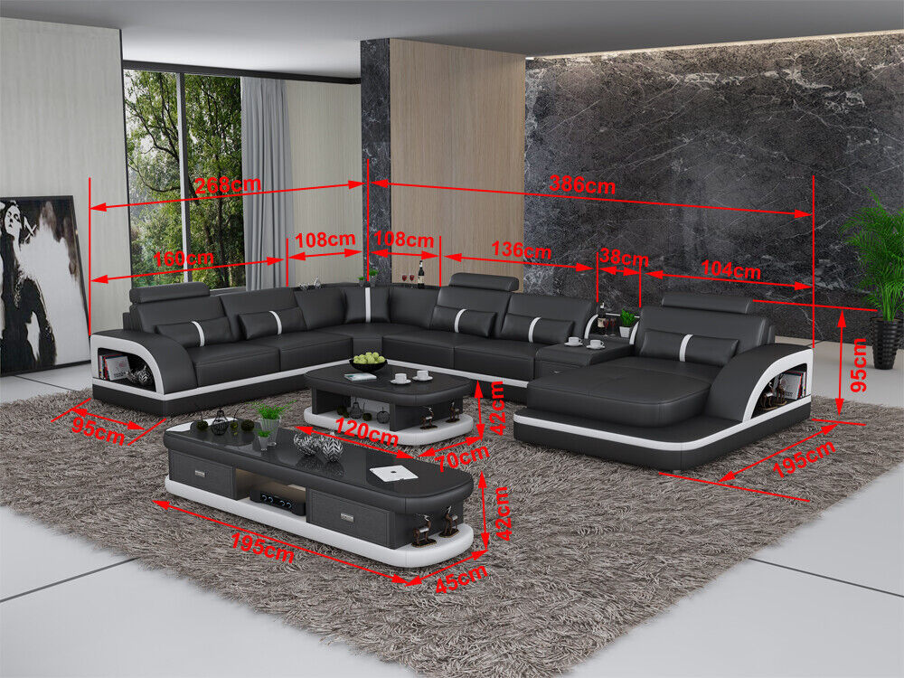 Introducing the 'Leather Sofa Corner Sofa Set Upholstery U-Shape Couch Sofa Design Corner Suite,' a sophisticated blend of style and functionality for your living space. This exquisite corner sofa provides an expansive seating solution with a length of approximately 268 x 386 x 195 or 195 x 386 x 268 cm, a height of approximately 95 cm, and a depth of approximately 95 cm, allowing ample room for relaxation. Available in a **free choice of color**, this elegant piece is crafted from **premium leather fiber material** (70% leather / 30% polyester) that offers durability and comfort. For those desiring a more luxurious feel, optional upgrades are available, including **premium genuine leather** and **premium textile fabric**. The sofa's inner frame is made of real wood, ensuring robust support and longevity.
